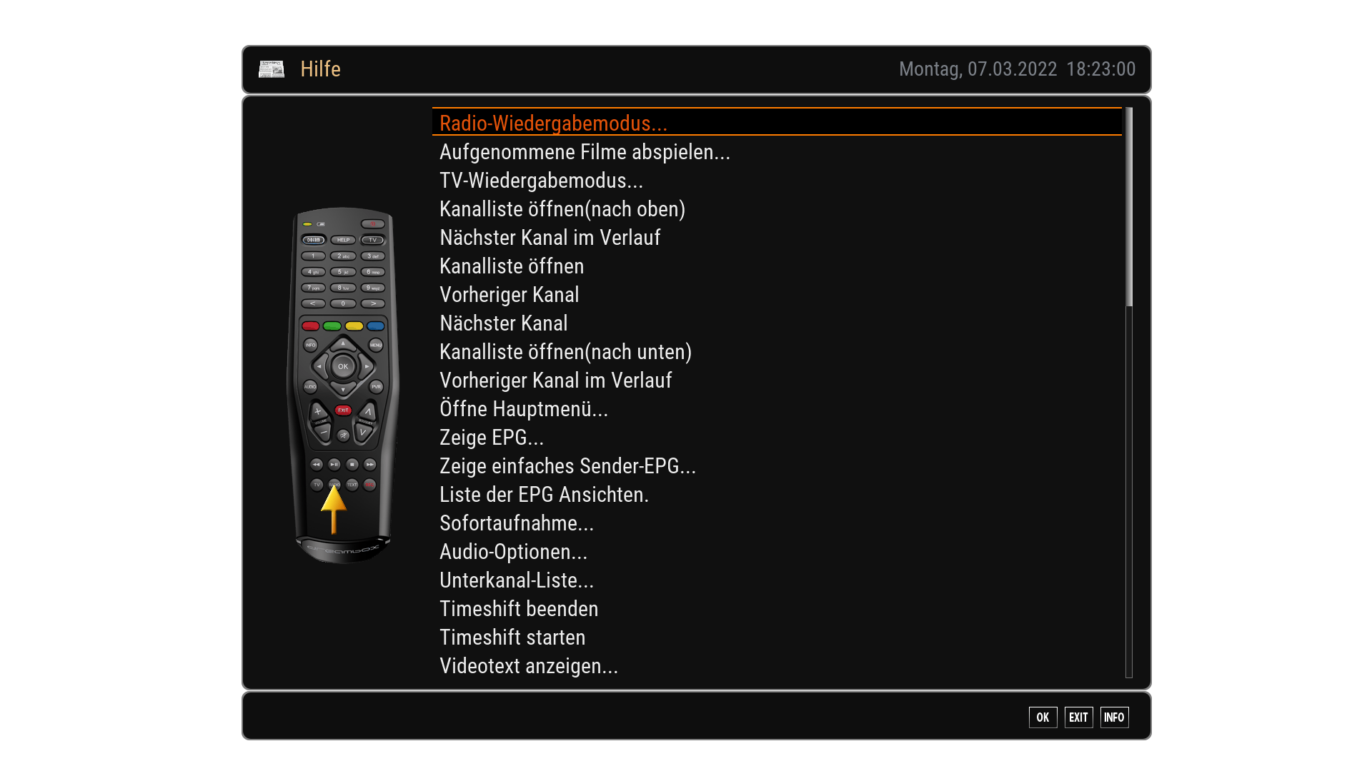 • Warum der help screen nicht passn sollte bei der feed version ist ein rätsel...