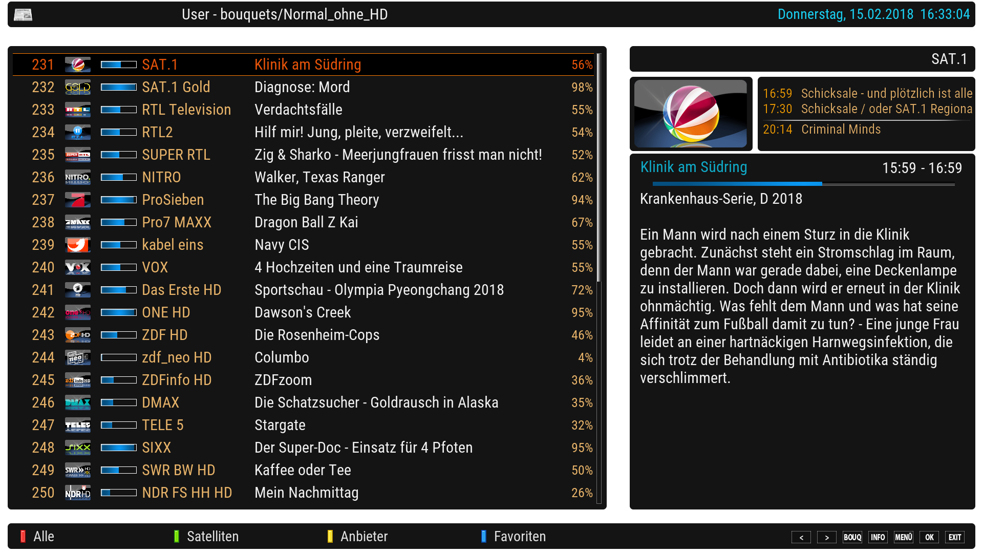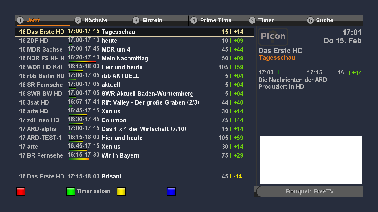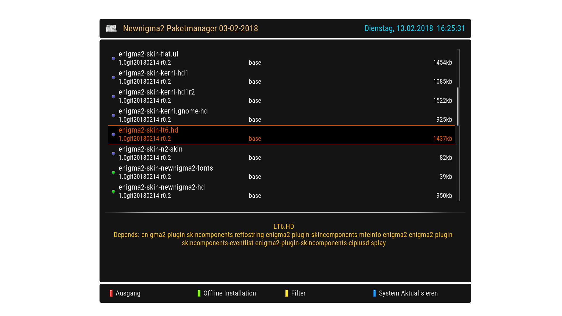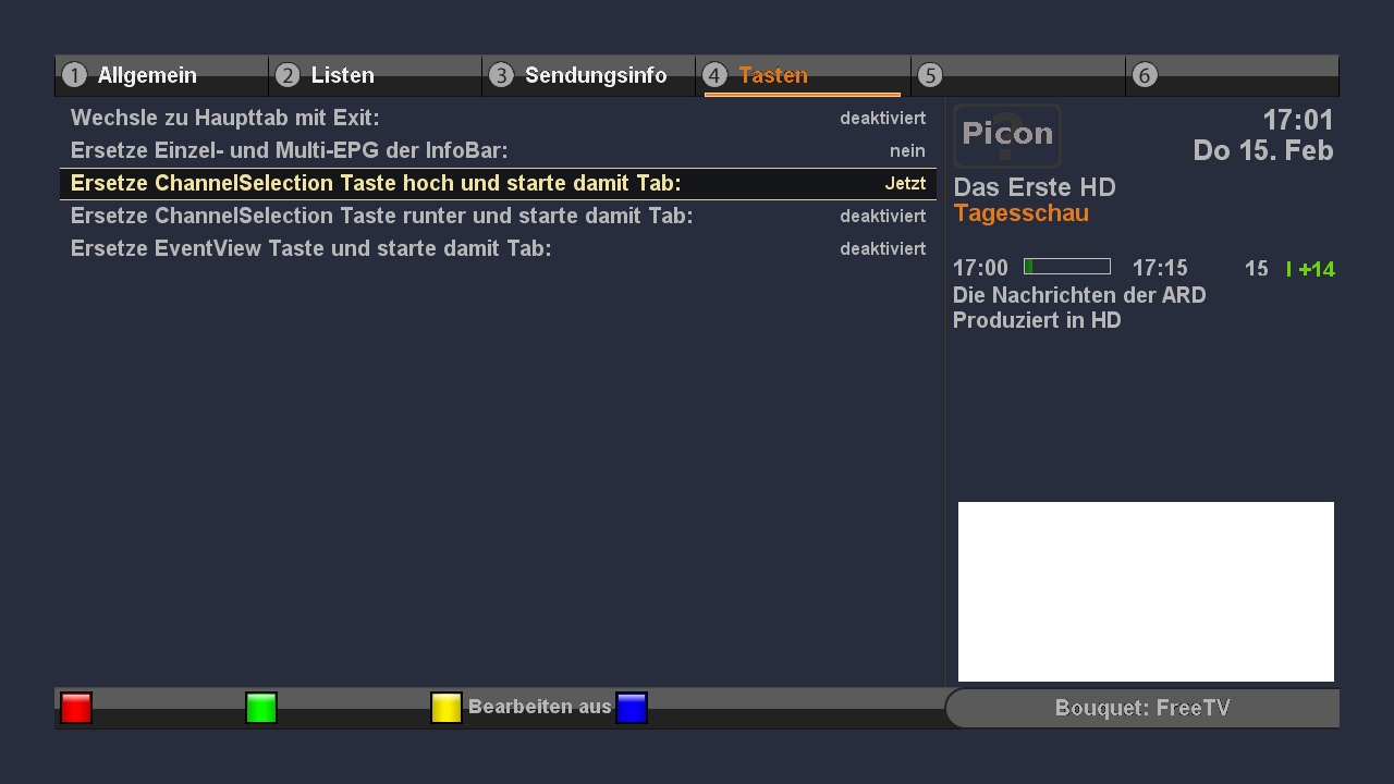 Jetzt bin ich ein bisschen am rumprobieren und testen mit der 920. Von meiner 7020HD war ich für das EPG das Merlin EPG gewöhnt. Das konnte ich auch vom Feed ohne Probleme installieren. Dann habe ich verschiedene Skins ausprobiert und unter anderem das LT6 vom Feed geladen. Das hätte ich besser sein lassen sollen... Danach habe ich wieder zum Nuke.Evo gewechselt. Nur seit dem kann ich das Merlin EPG nicht mehr mit der Pfeilhoch-Taste starten. Es kommt immer das normale EPG. In den Einstellungen vom Merlin EPG habe ich aber eingestellt, dass es mit der Pfeilhoch-Taste die Sicht "1 Jetzt" startet. Funktioniert aber nicht mehr. Ich kann es nur noch starten in dem ich es über die blaue Taste "Erweiterungen" starte. Das ist mir aber zu umständlich.