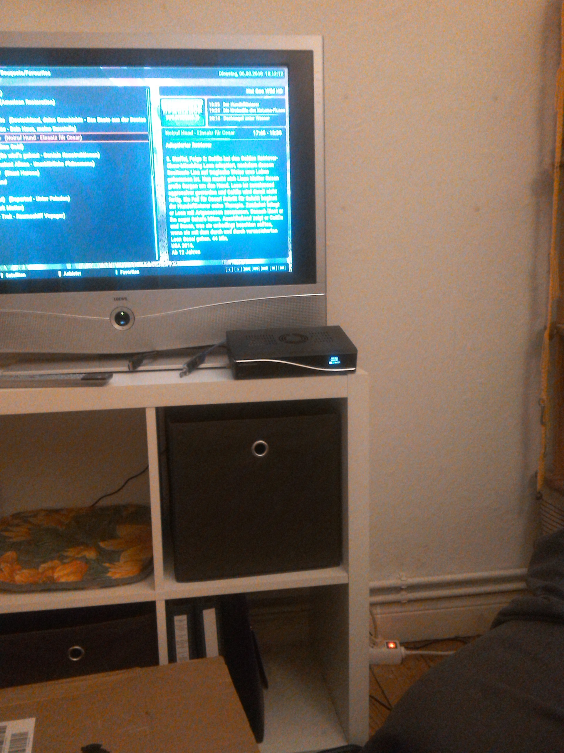 Meine Dreambox steht jetzt leicht nach unten guckend, die hinteren Stützfüsse hab ich mit provisorischem Zollstock unterfüttert(teste z. Zt. verschiedene Schräglagen).