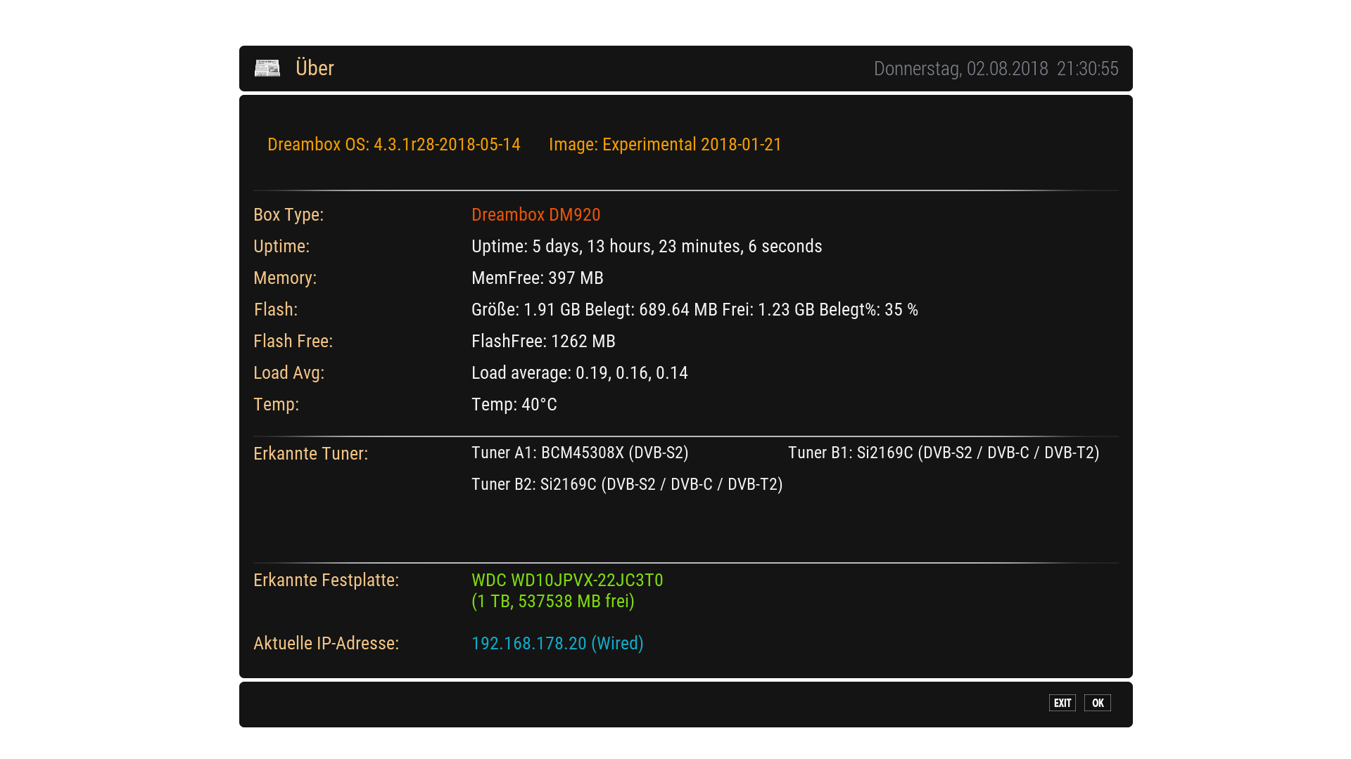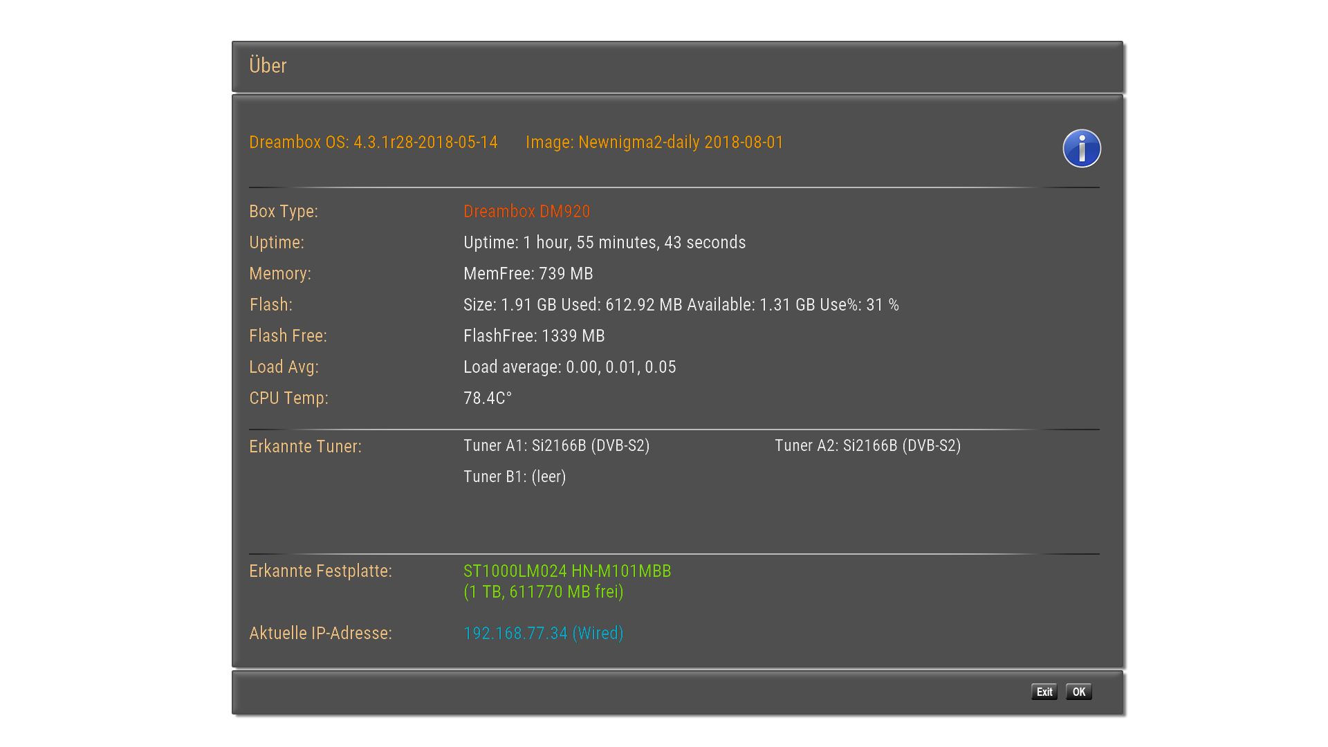 Eim Wohl dem, der eine Box hat, bei dem man sich die SoC Temperatur nicht anzeigen lassen kann. Man hat nie Sorgen.