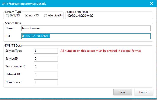 @prof_haase: Bitte stelle für die weitere Fehleranalyse folgende Informationen zur Verfügung: 1) Logfile, das die Aufrufe der 3 Streams enthält (den erfolgreichen aus dem Web sowie die beiden nicht erfolgreichen der Kamera). 2) Netzwerkkonfiguration der Dreambox, der Kamera, des Internetrouters inkl. Angaben, ob LAN oder WLAN verwendet wird, ob DHCP aktiv ist, usw. 3) Die Einträge in der Kanalliste für die 3 Streams. 4) Antwortet die Kamera auf ping? Wenn ja, lässt sich die Kamera von der Dreambox aus anpingen?