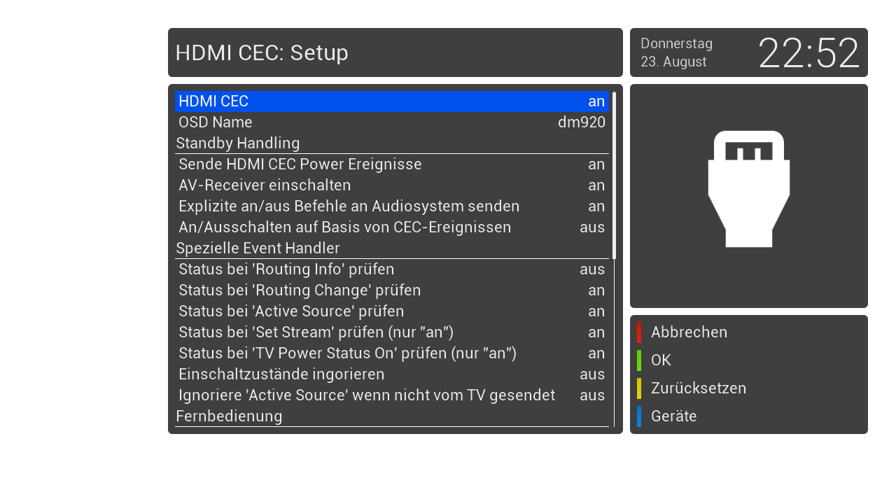 2. Der TV (Panasonic VT50) wurde bisher per CEC Steuerung immer mit an- und ausgeschaltet. Verwendet wurden diese Settings: Link