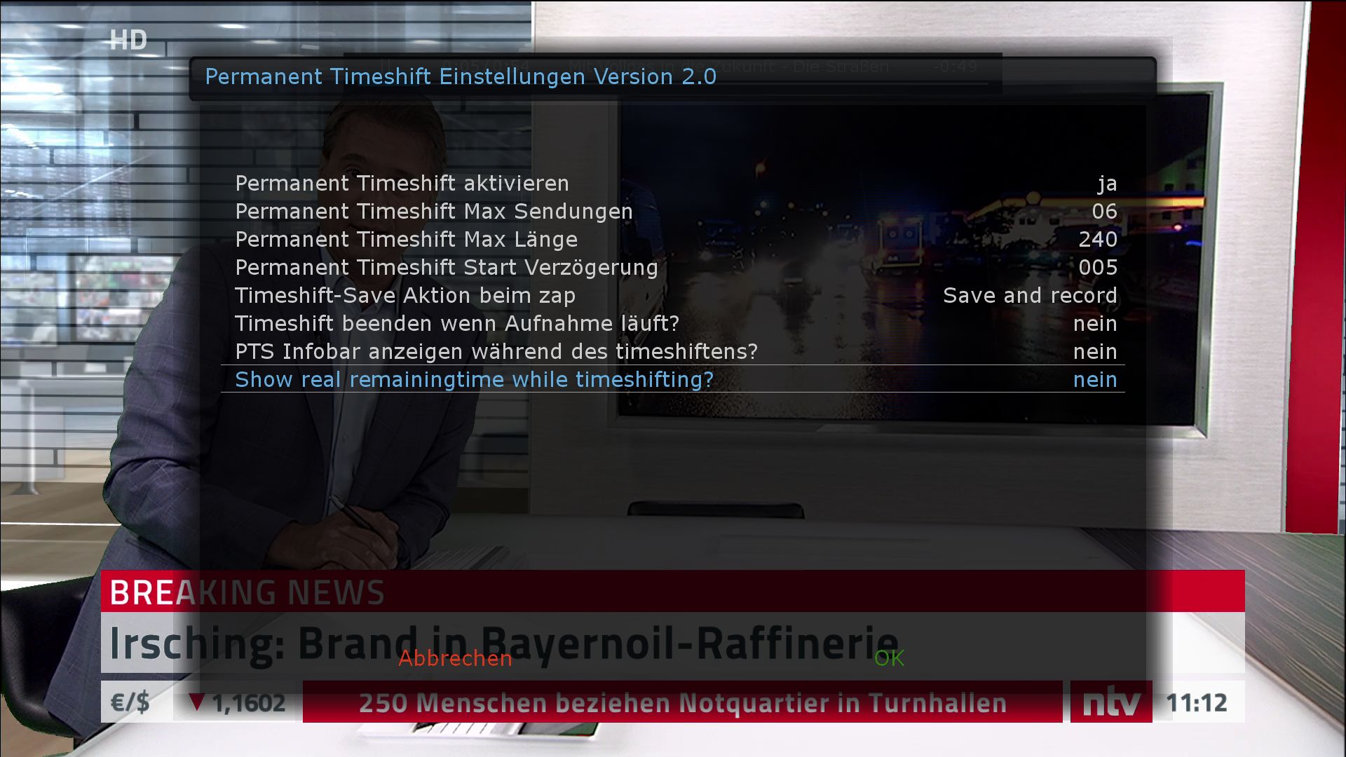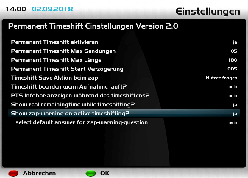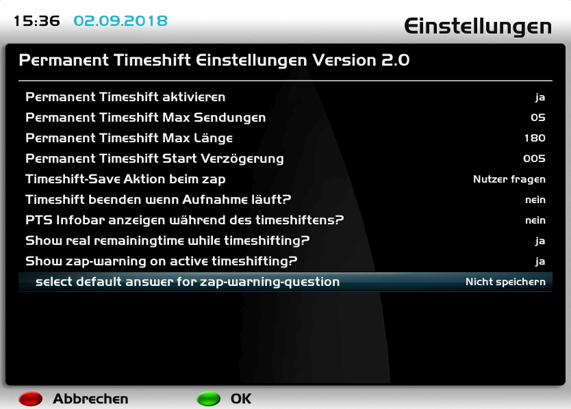 ich habe das aktuelle daily 2018-09-01 installiert und vor ein paar Tagen wurde Permanent Timeshift Version 2.0 installiert. Seither habe ich den PTS Infobar in der Anzeige und mit "Anzeigen-Nein" lässt sich dieser während des Timeshiftens nicht ausblenden