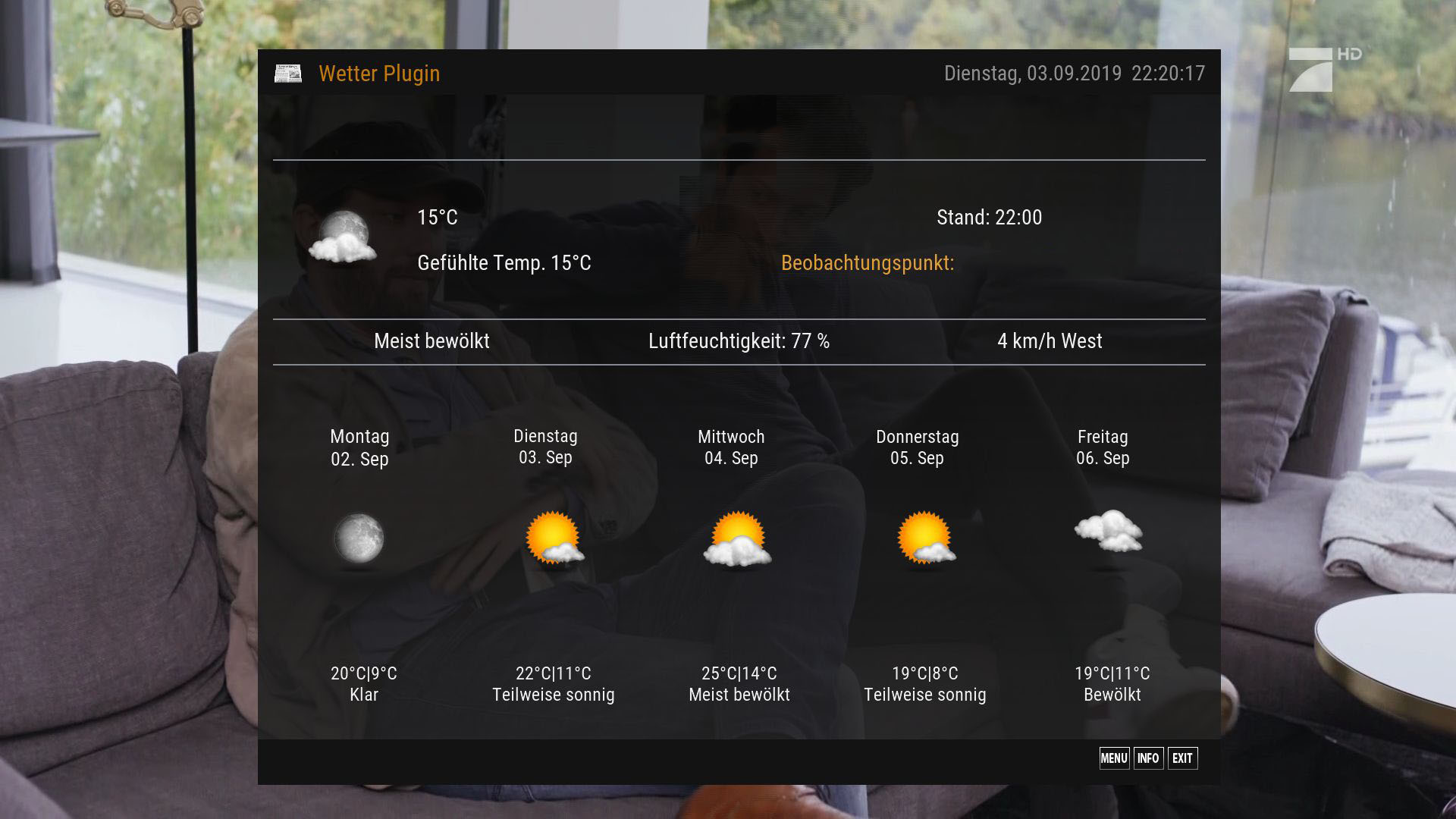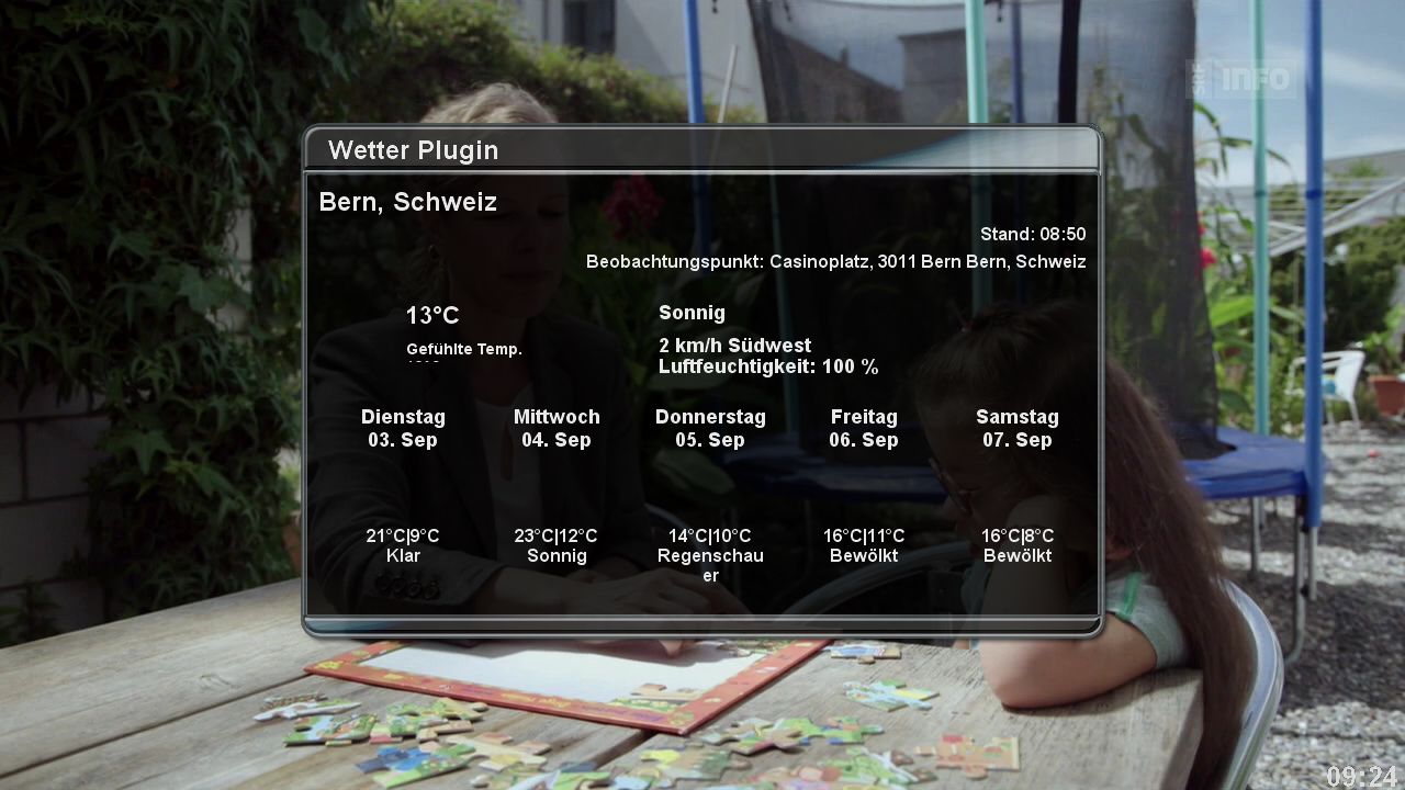Habe das Wetterplugin auch schon x-mal neu installiert, Code neu gesucht aber nix. Habe auch mal verschiedene Deutsche Stätte ausprobiert, aber nix.