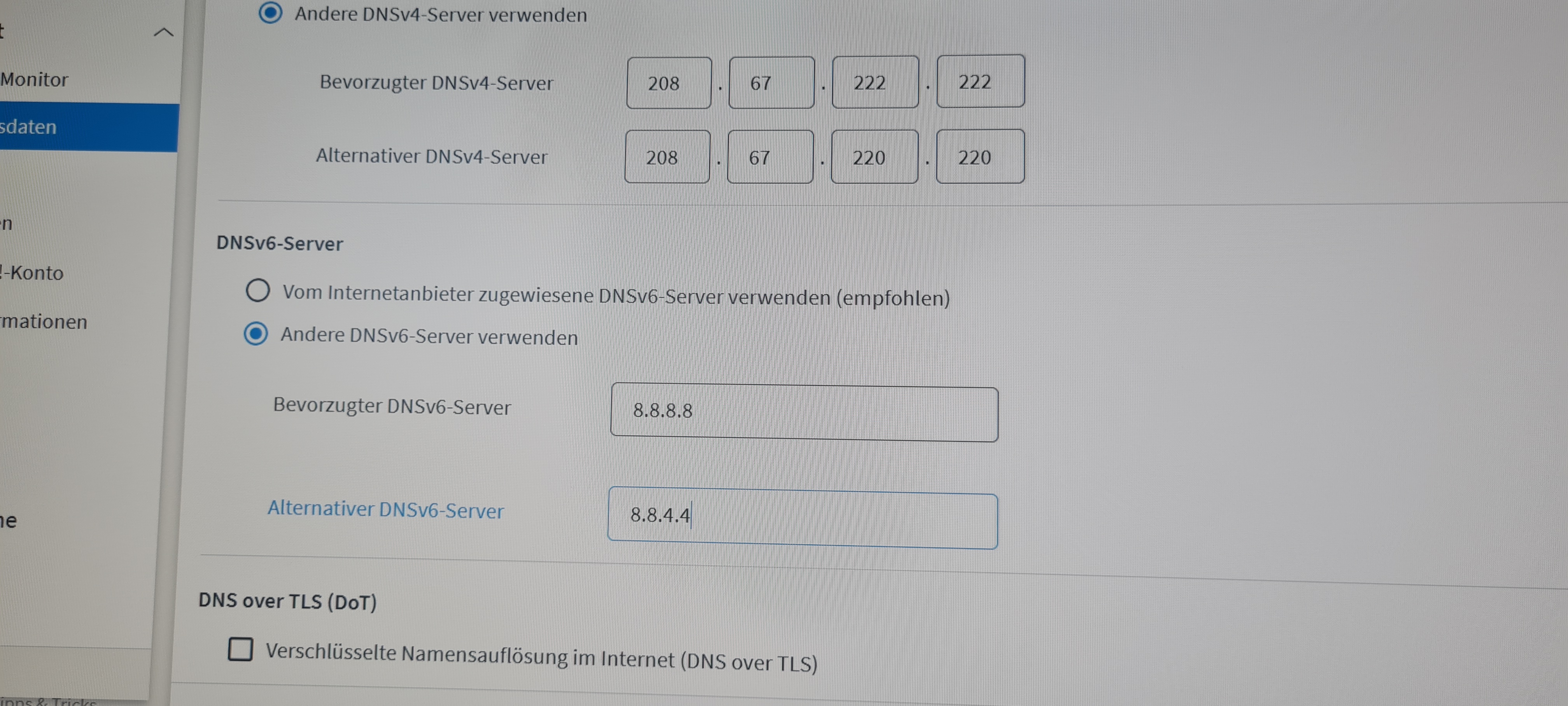 Im Bereich DNSv6-Server den Punkt Andere DNSv6-Server verwenden auswählen
