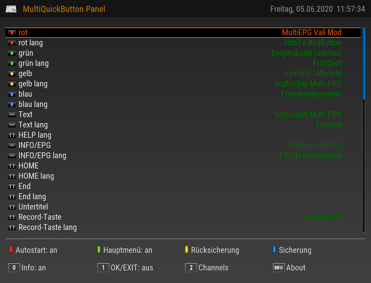 Es lassen sich Funktionen/Plugins den Farbtasten bei langem Tastendruck zuweisen.