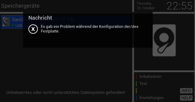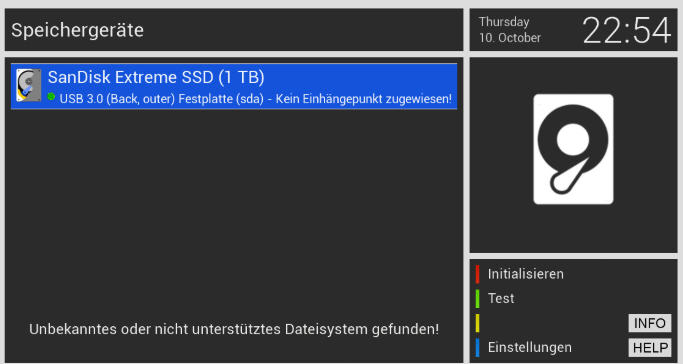 Nach heutigem Update einer meiner ONE findet die Box meine Externe SSD zwar ,wird aber nicht mehr eingebunden.