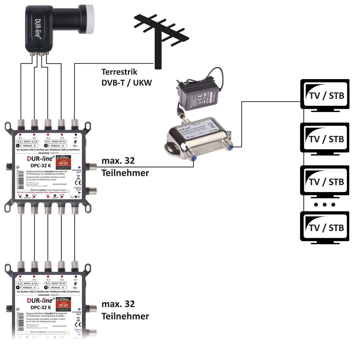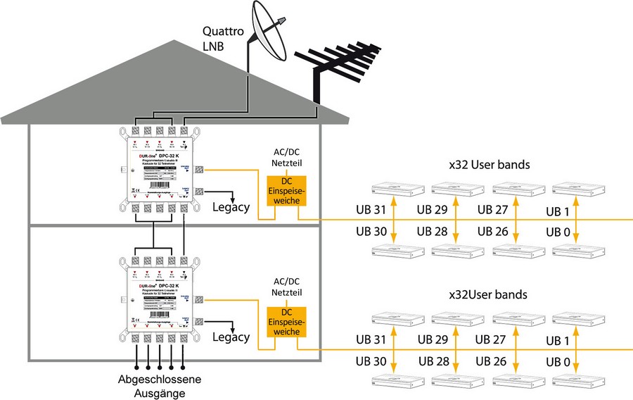 Natürlich braucht der DCP32 ein Quattro LNB (oder Wideband, je nach Programmierung).