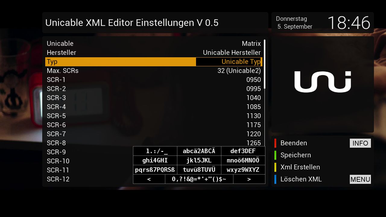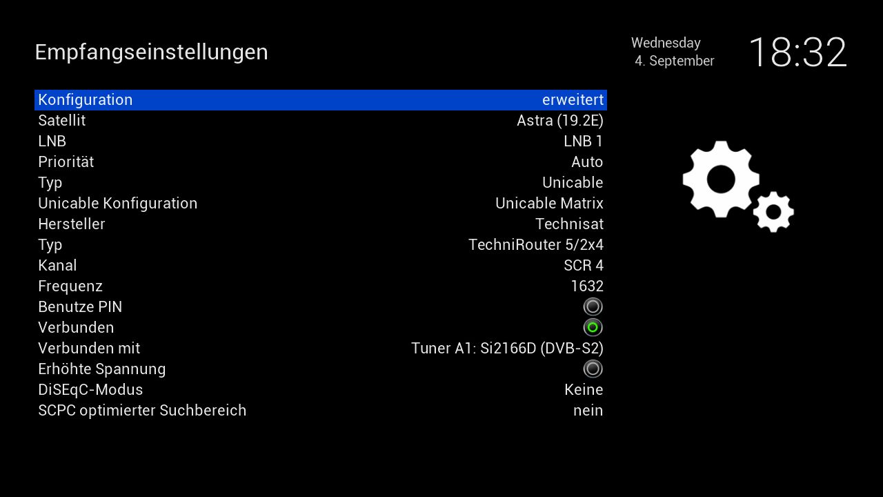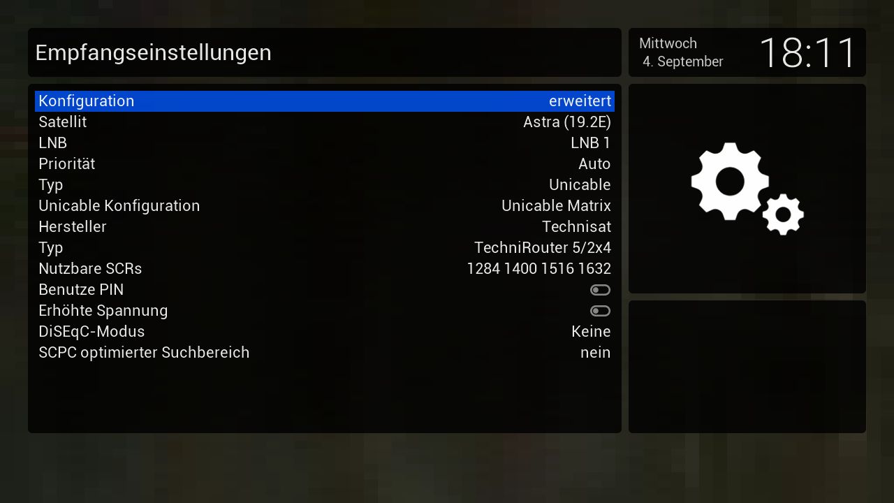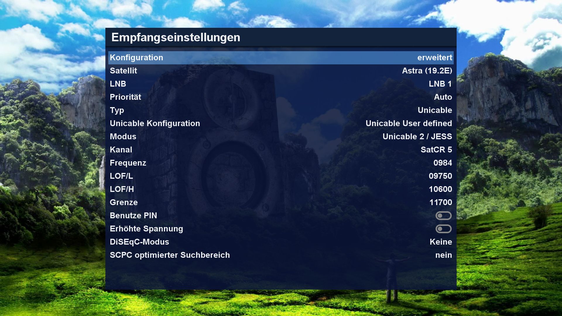 Auch Tuner für mein Unicable EN50607 hat funktioniert. Lediglich die vorgegeben Frequenzen für die Userbänder sind falsch, aber das kann man händisch korrigieren.