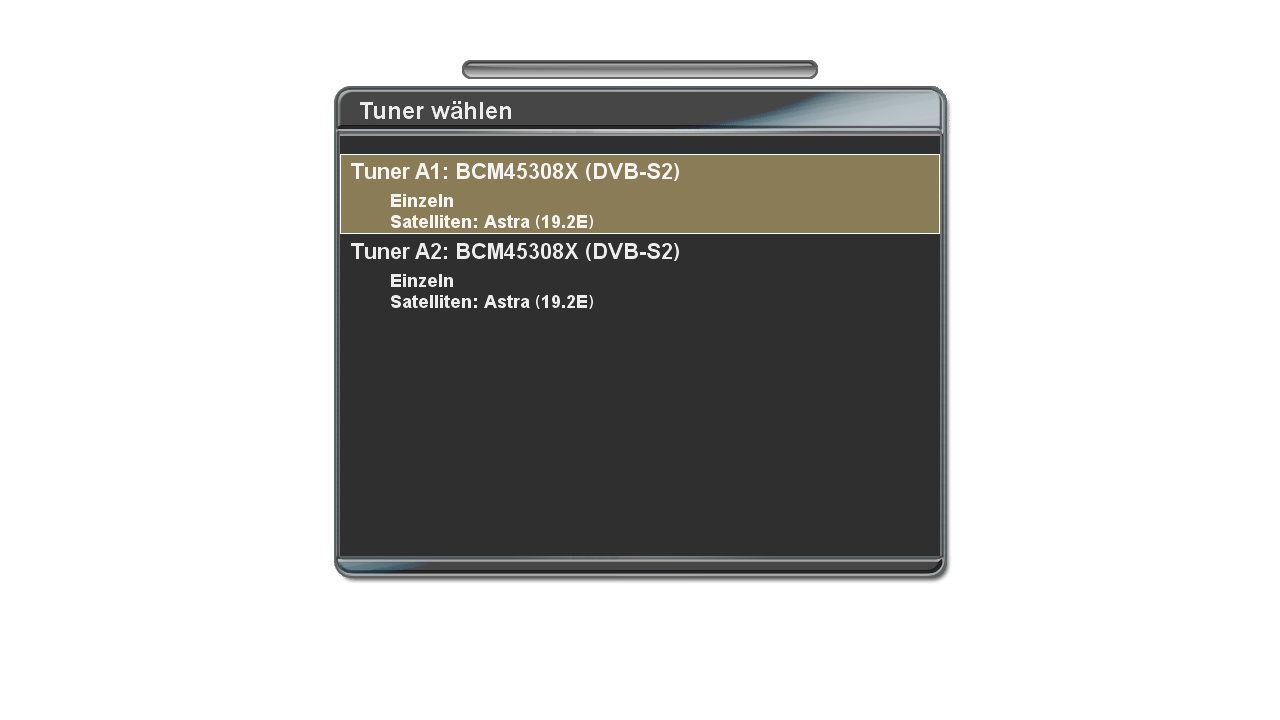 Unter Einstellungen Kanäle Kanalsuche TunerKonfiguration werden mir beide Tuner A1 + A2 angezeigt und es sind beide in Einzeln und Astra konfiguriert. Also ganz einfach