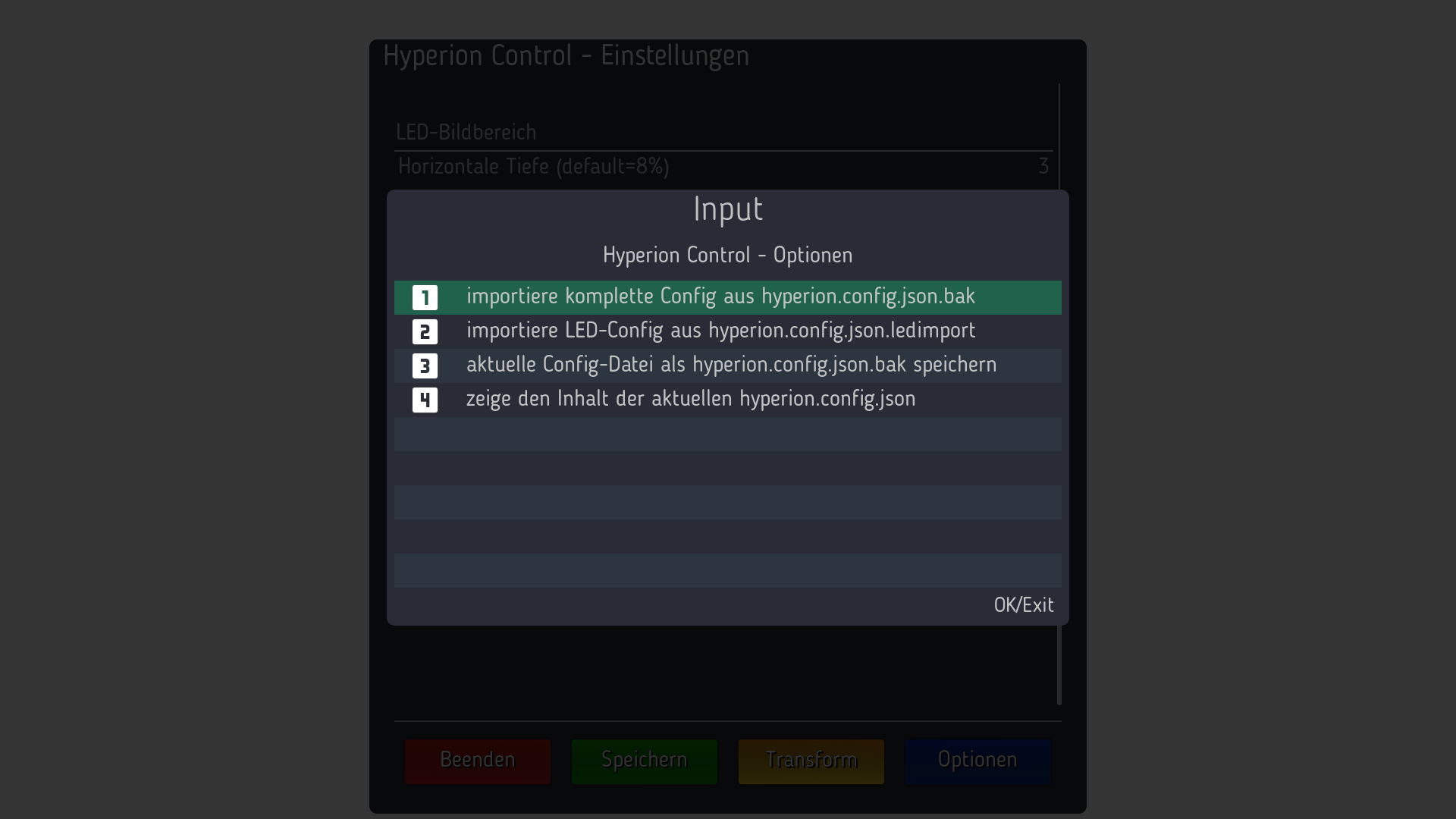 Neu ist das man von einer hyperion,config.json.bak die Einstellungen übernehmmen kann.