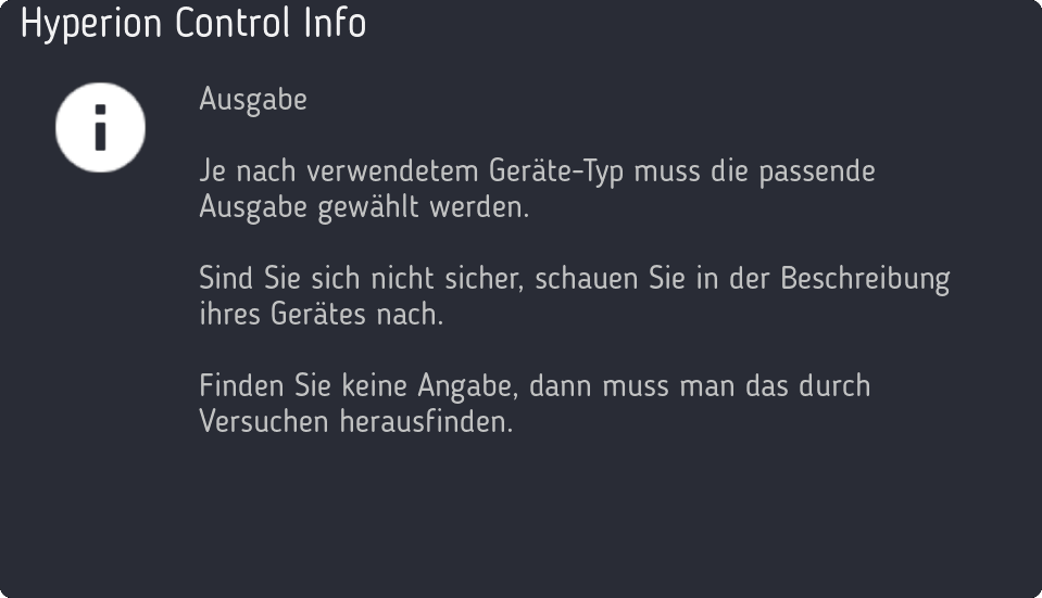 'Device-Typ' hier gibt es z.Zt. keine Auswahl, möchte man also etwas anderes testen/versuchen muss man das in der hyperion.config.json selbst eintragen. Sollte z.B. philipshue oder andere Systeme erfolgreich laufen wird das dann erweitert.