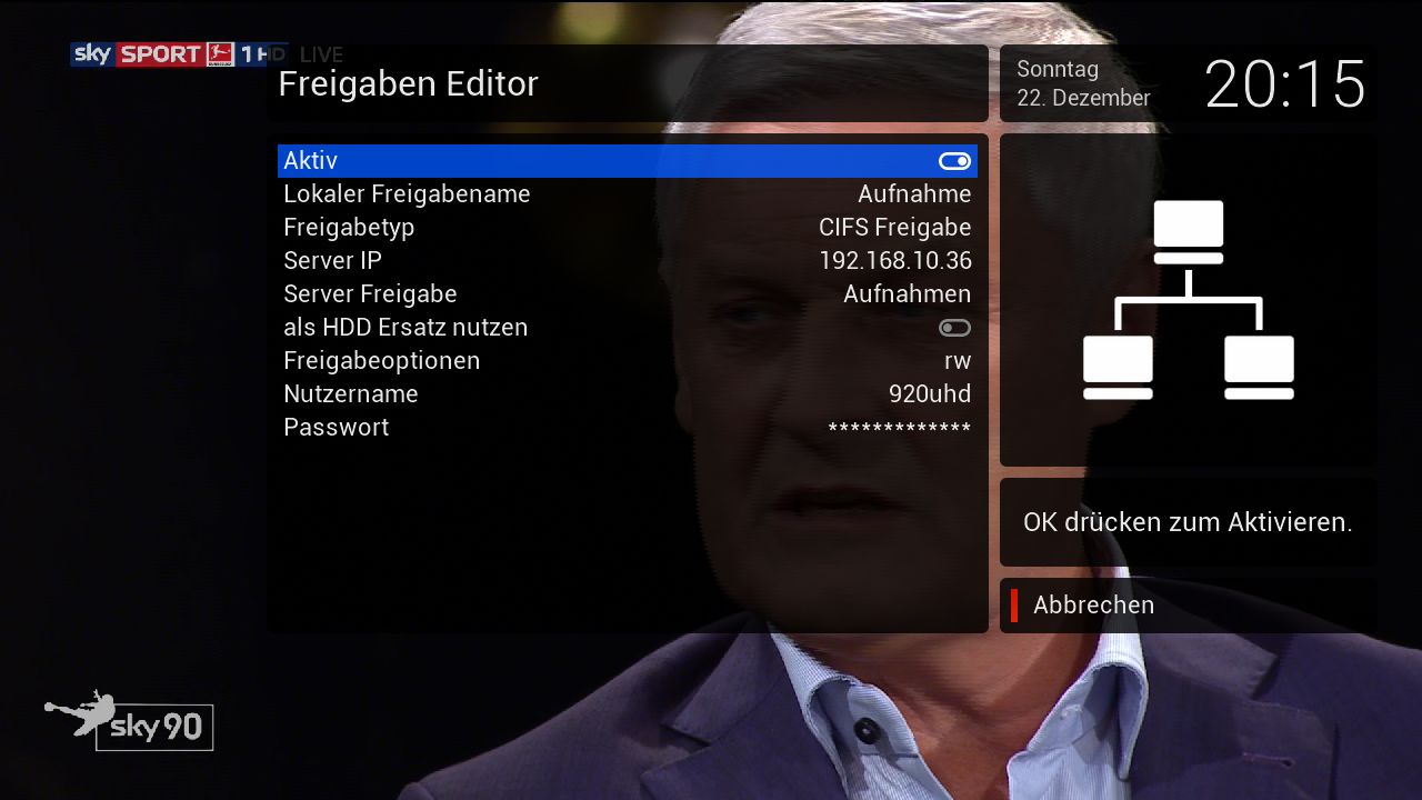 • Wie sieht denn die Freigabe auf der Dreambox aus?