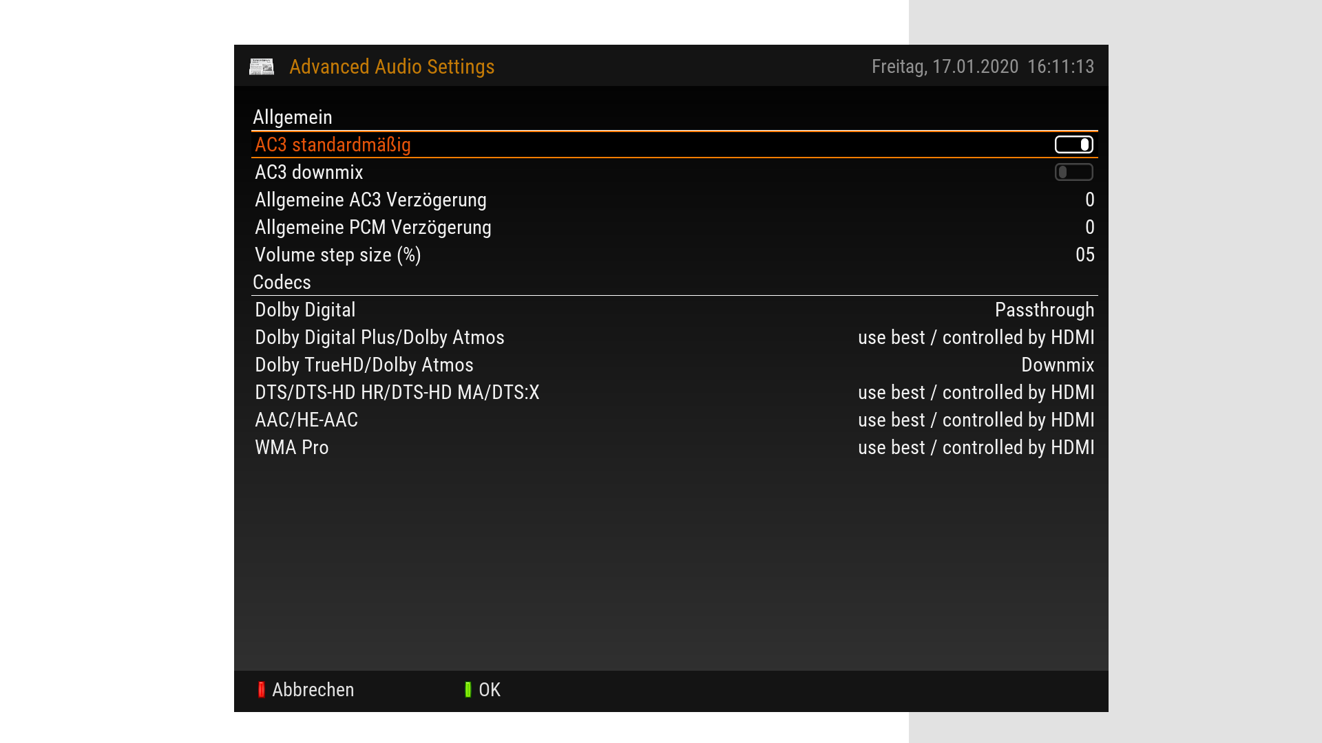 EAC3 ist auch unter dem Begriff Dolby Digital Plus bekannt. Da werden 7.1 eigenständige Audiokanäle genutzt. Wen dieser Standard von einem Teil Deiner Audiokette nicht unterstützt wird, kommt am Ende nichts raus. Daher werden auch in der Dreamboxsoftware im Audiobereich Konvertierungsoptionen angeboten.