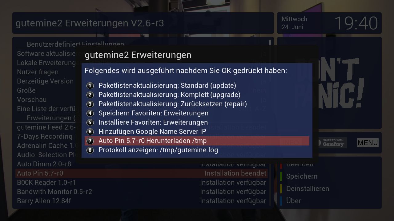 Wer sich die gutemine Systemplugins installieren möchte, der wird hier fündig. Bitte Readme lesen Funktionieren auf DMone und DMtwo. dbackup funktioniert aber bei mir nicht, die meisten anderen aber schon wie z.B. gPIP für die DMone und DMtwo