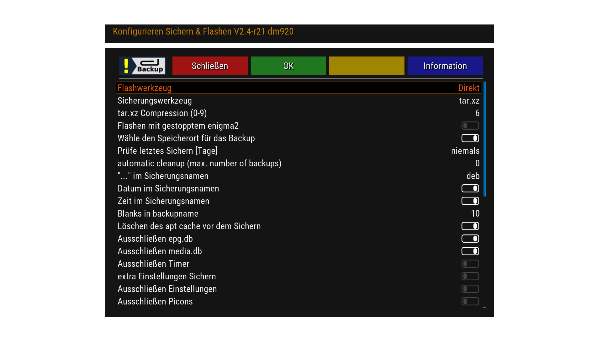 ich hab vor ein paar Tagen eine DM900 eingerichtet und den Stand mit dbackup auf eine Festplatte gesichert. Gestern wollte ich diese Sicherung flashen, aber