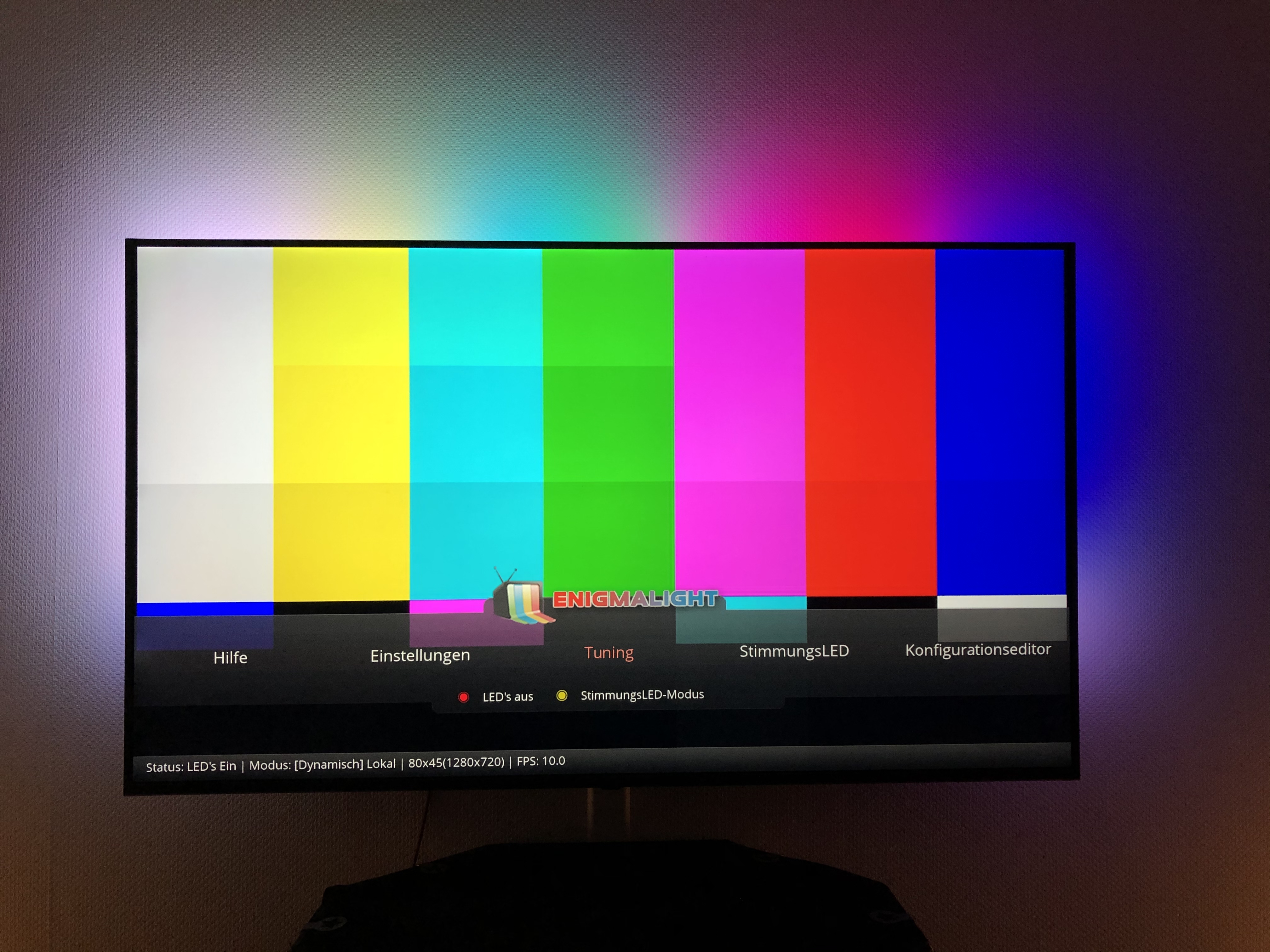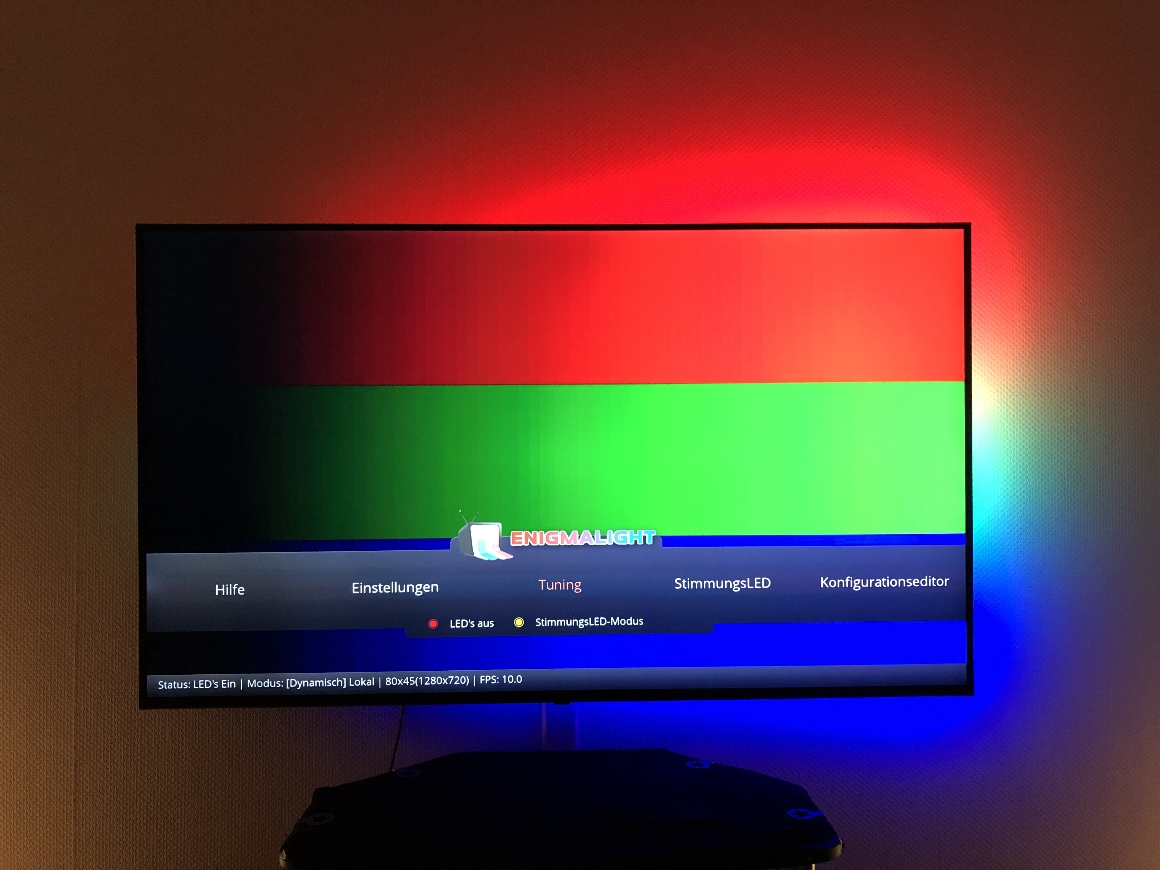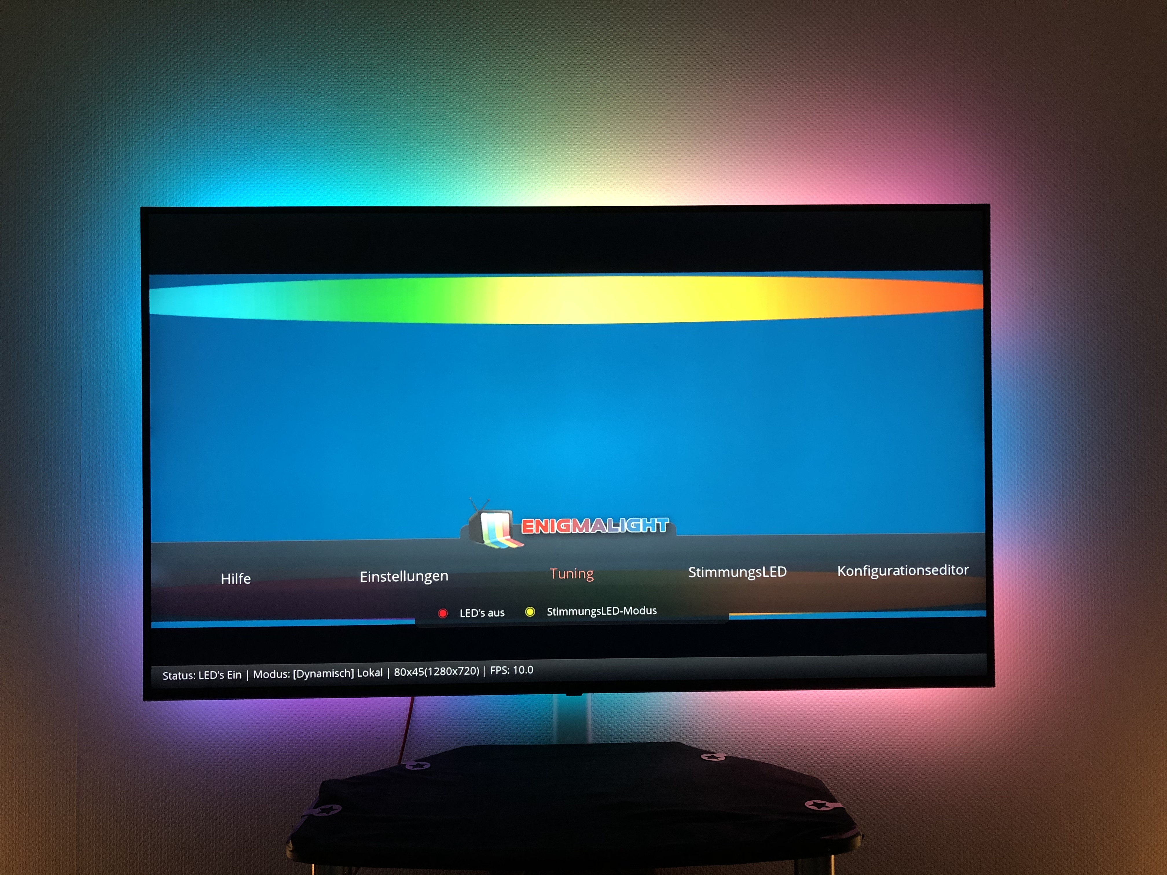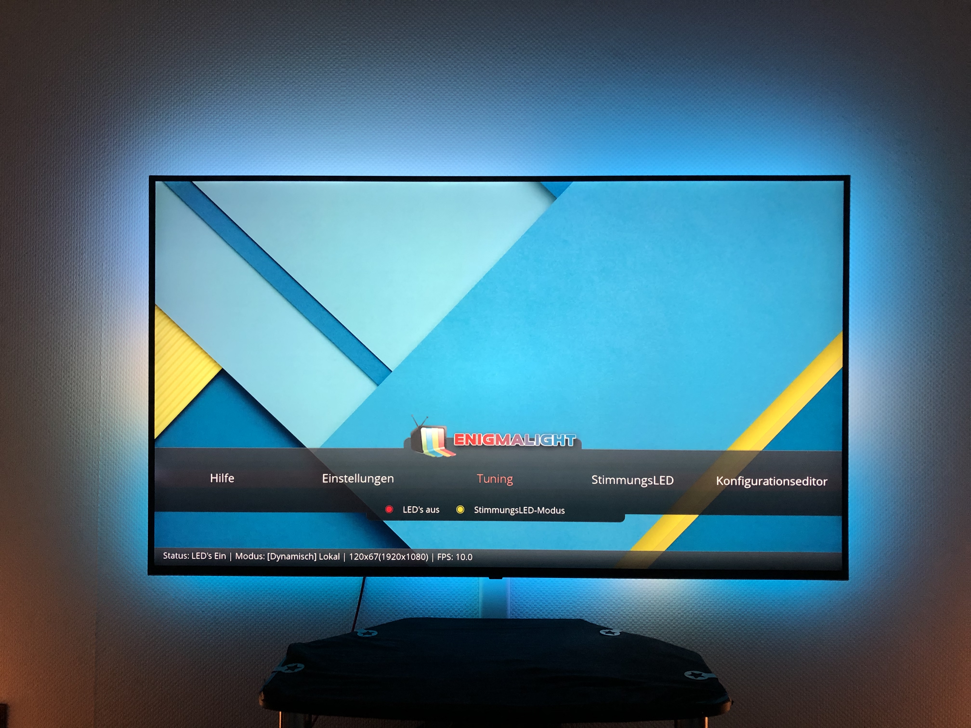 Mit EnigmaLight kann man auch mehrere Instanzen betreiben und mit Verschiedenen enigmalight_tv.config, enigmalight_lampe.config, enigmalight_hue.config, enigmalight_all.config einfach wechseln.