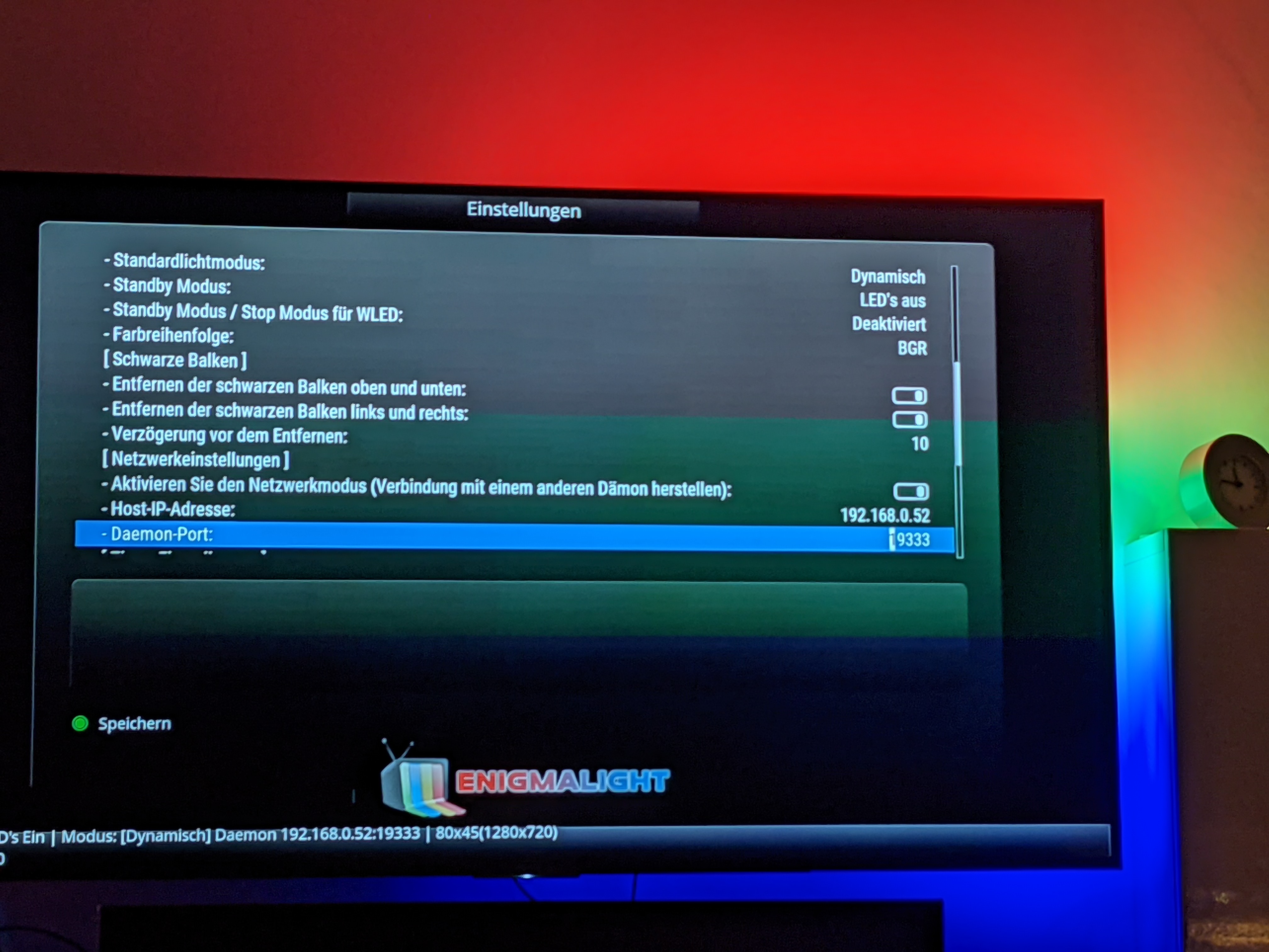 DM 900 UHD + 3 x WLED Ambilight (Enigmalight Plugin)