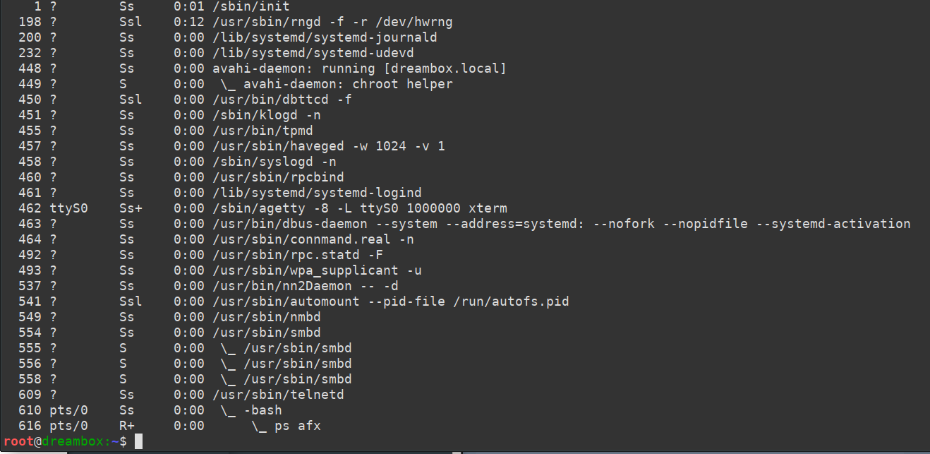 kein Bild, LED ist aus, die Box reagiert auf logins per telnet, ich komme rein und sehe dass nichts läuft: