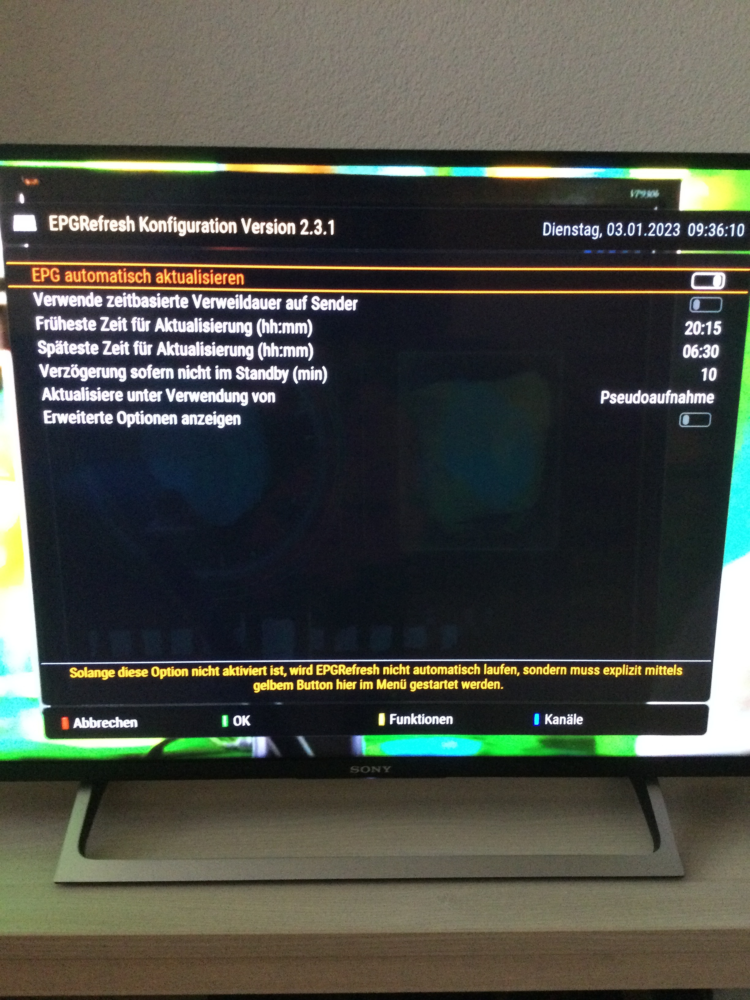 EPG Update über EPG Refresh oder über irgendwelche Internetquellen? Wenn EPG Refresh: wie sehen die Einstellungen des EPG Refresh aus? Was für Tuner hast du und wie viele Kabel gehen dort hin?
