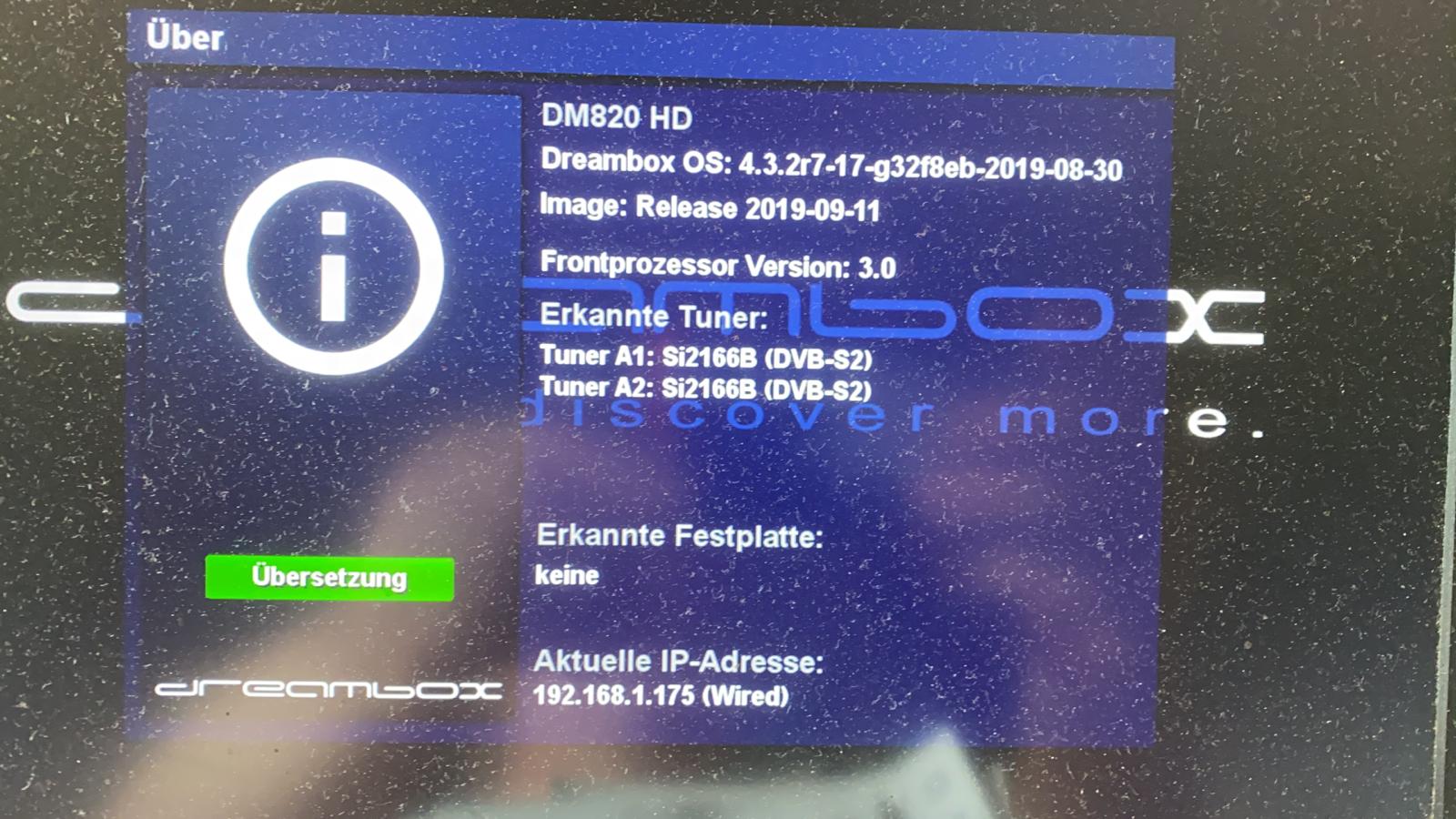 ich bin neu hier im Board zu meiner Person ich benutzte mehr, als 10 Jahre für alle meine Dreama das Image vom iPad Board nun dachte ich, es wäre mal an der Zeit etwas Neues auszuprobieren da ich viel gutes von Newenigma2Image hörte gehört getan:-)) lief alles eigentlich ohne Probleme bis auf meine 820 hd das Flaschen lief ohne Probleme reboot und das Bildbleibt bei dem start Bild von Newenigma stehen das bootel läuft nicht weiter mehrere male probiert ändert sich nichts die Box ist in OrdnungiPadImage geflasht läuft ohne Probleme nun hat einer von euch eventuell eine Idee?
