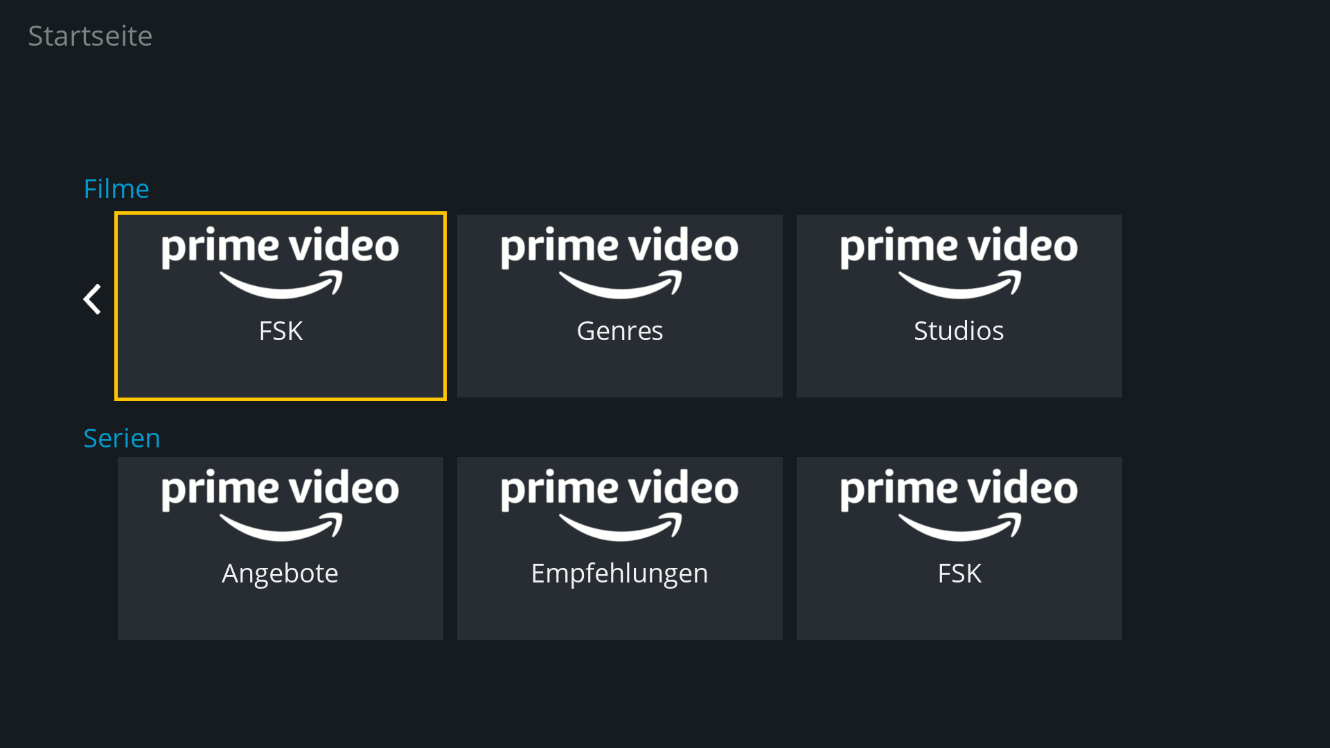Startseite mit gemischtem Einträge und dann nur mit Prime Einträge:
