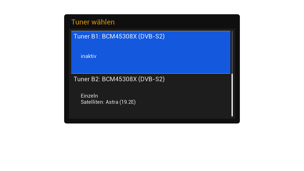 Beim Testen habe ich alle Tuner (A1, A2, B1 und B2) gemäß Screenshoot eingestellt. Jeweils nur einen Tuner und die anderen drei inaktiv.