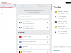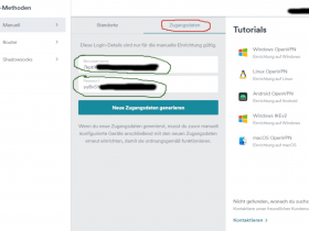 Die Zugangsdaten für die VPN-Verbindung finden Sie im Kontrollzentrum von SurfShark.