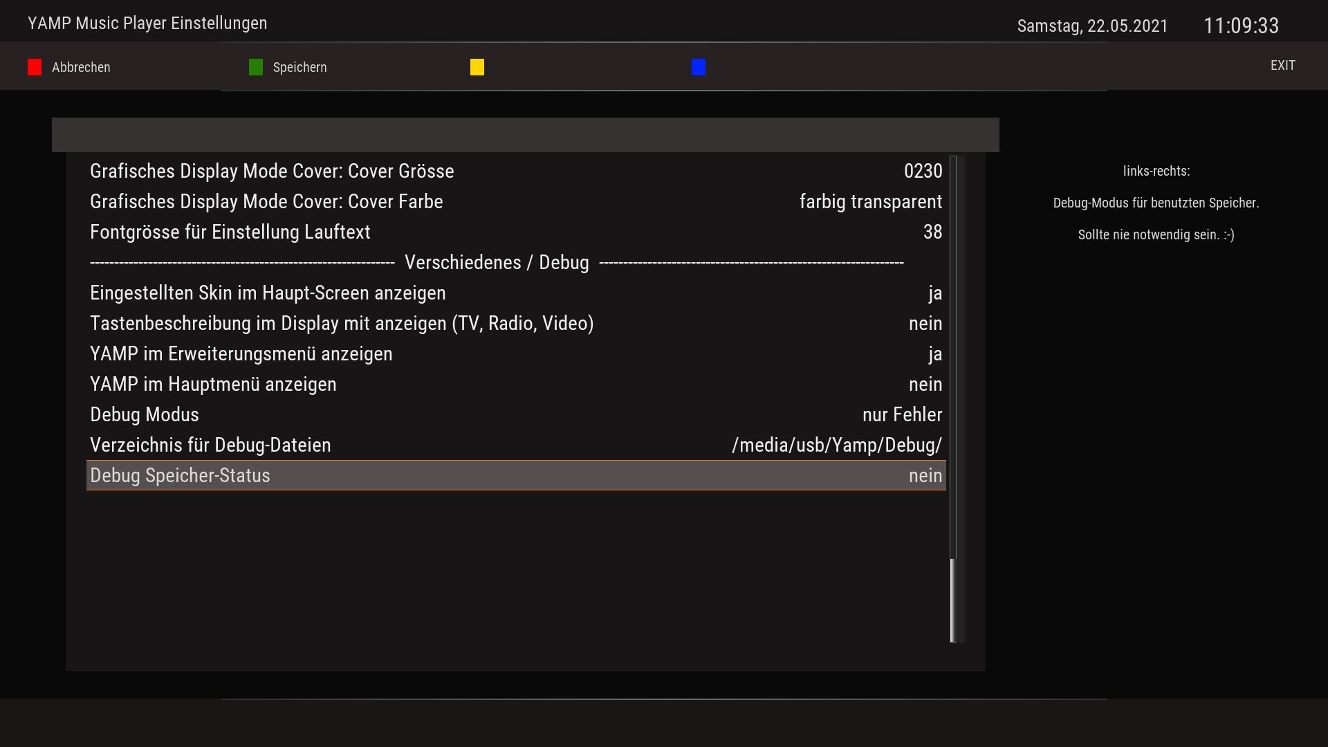 Und hier gleich nochmal eine kurze Anleitung für die Einstellungen in Yamp und in der YampLCD.xml (im ausgewählten Skin):