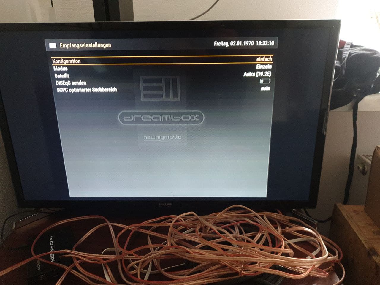 Aber ich habe meine Beschreibung wohl nicht präzise genug ausgeführt. Natürlich bin ich mir sicher, dass es ein Sat Anschluss ist, an dem ich den F-Stecker geschraubt habe, und das mein DM eine SAT Version ist, auch. In meiner alten Wohnung hatte ich einen Quadro LNB auf Astra 19,2E. Wie gesagt hätte die Box eigendlich sofort finden müssen. Dann hatte ich versucht im TV Menü die Tuner Einstellungen zu finden, leider sagt der Samsung nur Astra und das war‘s. Hier im neuen Haus gibt es leider keinen der mir Auskunft zur Sat Anlage geben könnte, da der Eklektiker, der das eingerichtet hat, nicht mehr existent ist und alle die hier vorher wohnten nur einen TV angesteckt hatten, wo es ja sofort läuft.