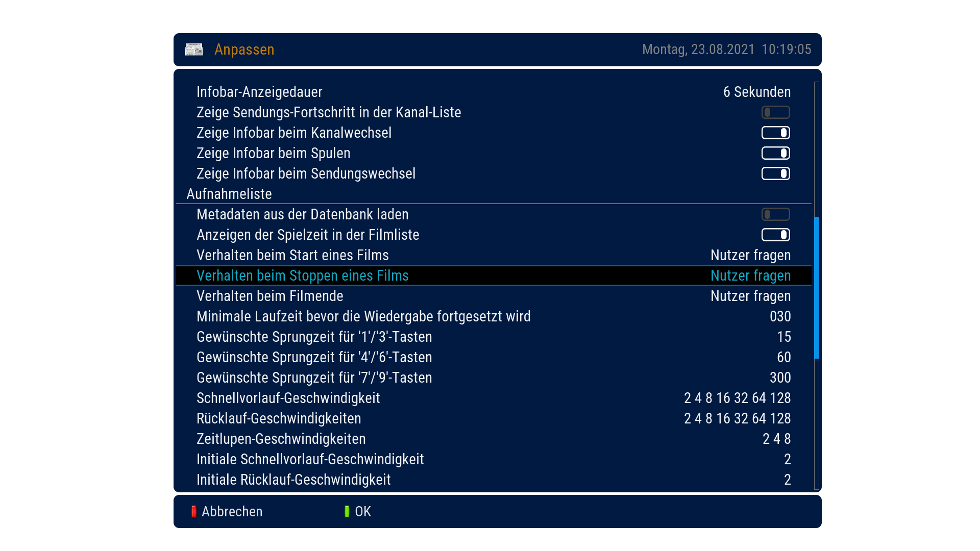 Also wenn du die Dreambox schon seit Jahren nutzt dann frag ich mich aber wieso du die Grundfuktionen nicht kennst ? für was denkst gibt es diese Einstellung unter Anpassen?