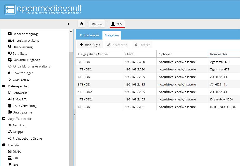 Per Netzwerkbrowser gefunden und eingehängt und freigegeben - ist in der Mount Übersicht auch zu sehen