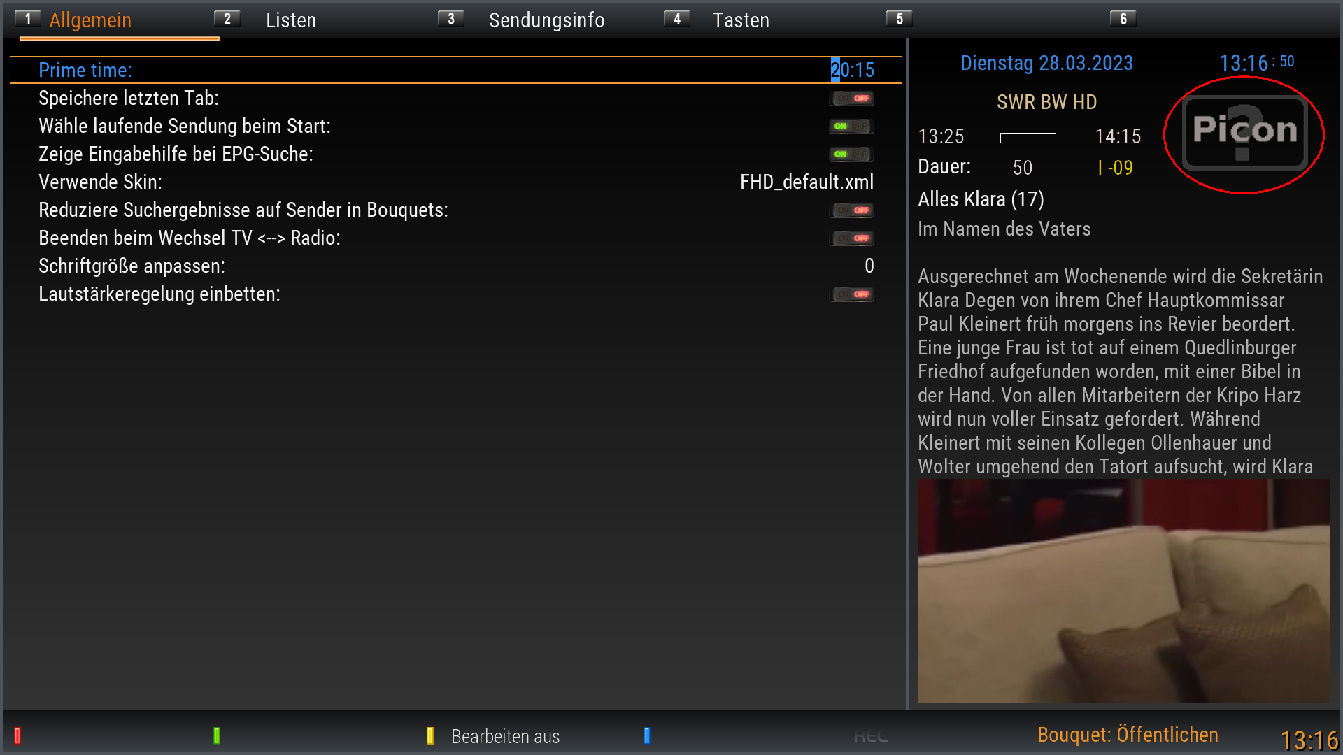 Bei mir werden die Picons rechts nicht angezeigt. Links, in der kanalliste aber schon.
