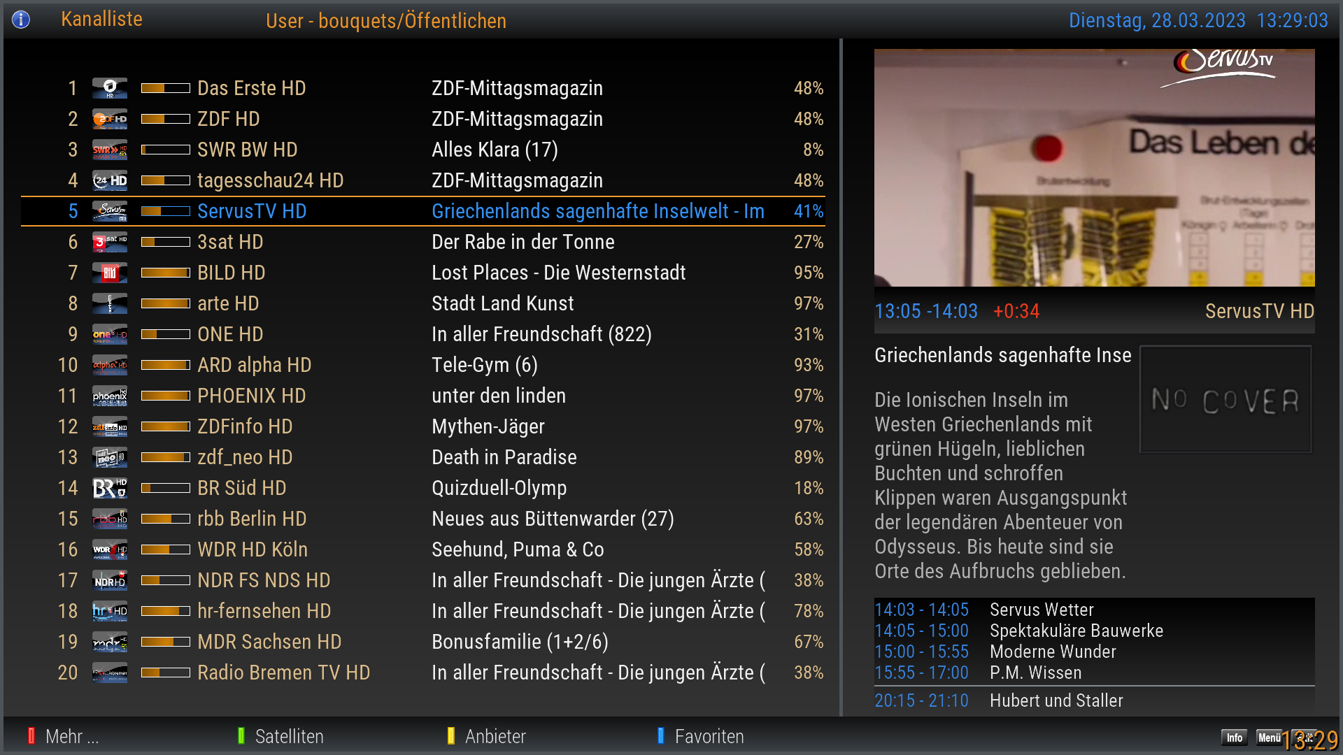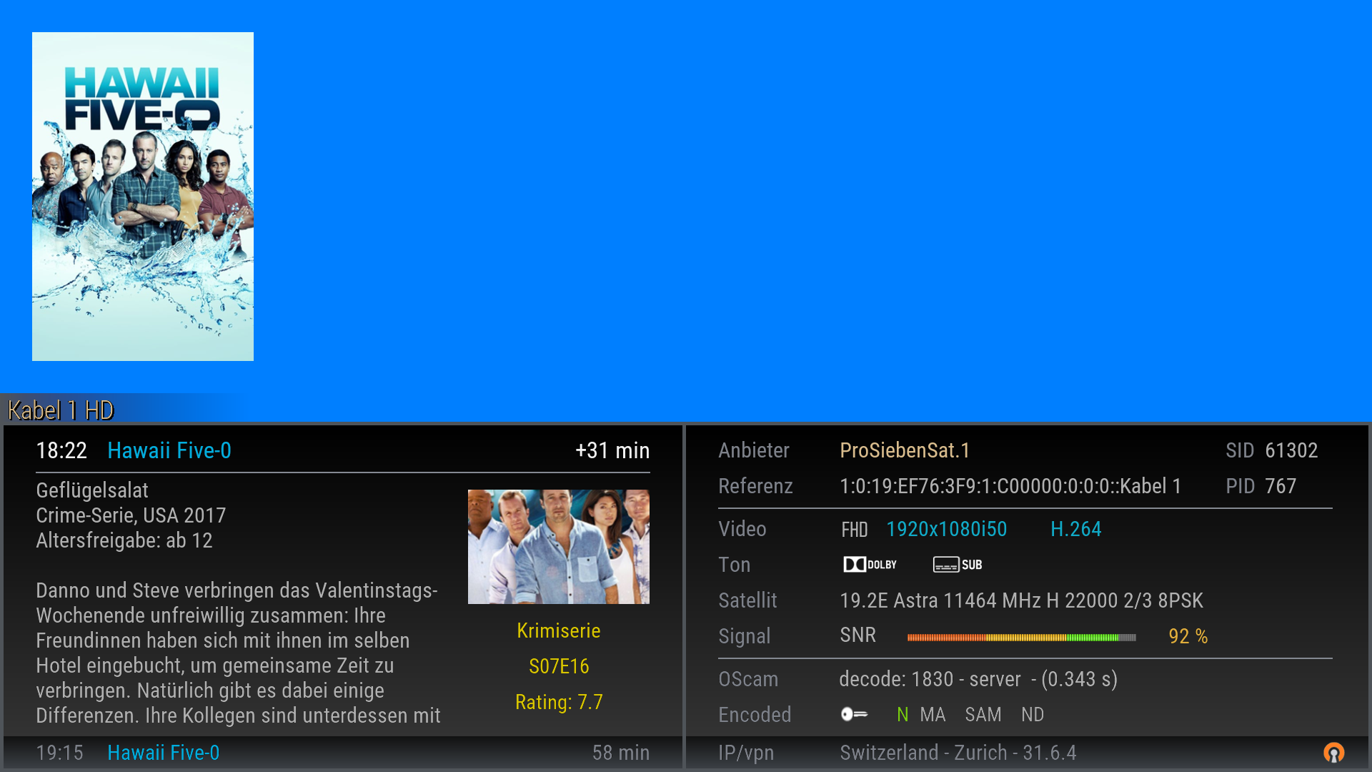 Di Picons im Infobar und die Kanallsite werden angezeigt.