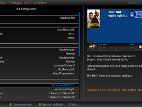 Hier wird alles automatisch eingestellt. Einfach ein Skin Design zB "Blue Menu left" auswählen. Der Skin wird mit "Themes anwenden" (grüne Taste) im neuen Design erstellt.