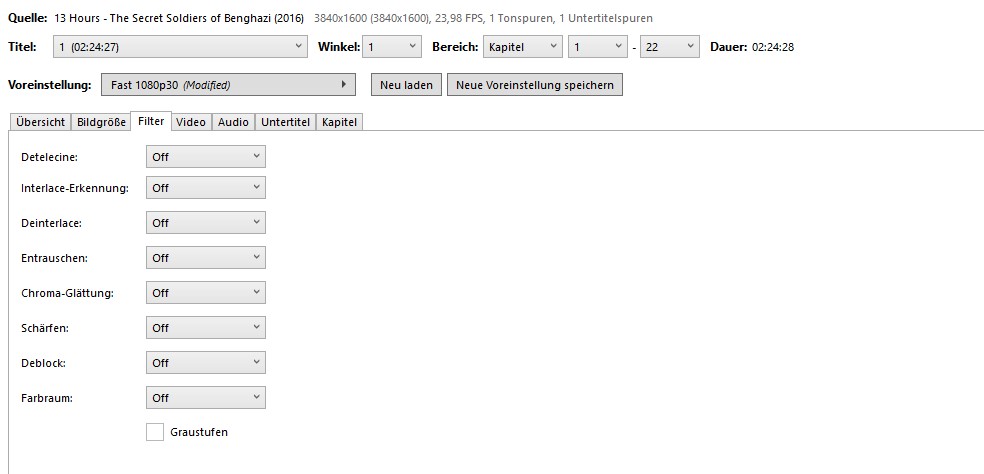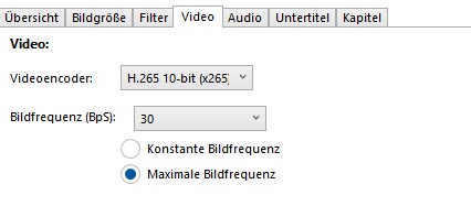 verwendete Encoder-Bibliothek : x265 3.1+19-c4b098f973e6:[Windows][GCC 9.1.1][64 bit] 10bit