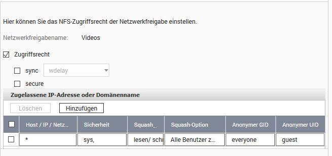 • Ich würds eigentlich lieber mit CIFS machen, hab aber schon gelesen das NFS wohl besser ist. Leider hat das auch nicht geklappt.
