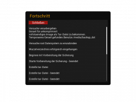 Wenn ich hier dann die gelbe Taste drücke, werden soweit alle Einstellungen gespeichert, die ich ausgewählt habe. - Erstellt wird in diesem Fall eine Datei "BackupCatalog_V0.7_Datum und Uhrzeit.tar.gz"