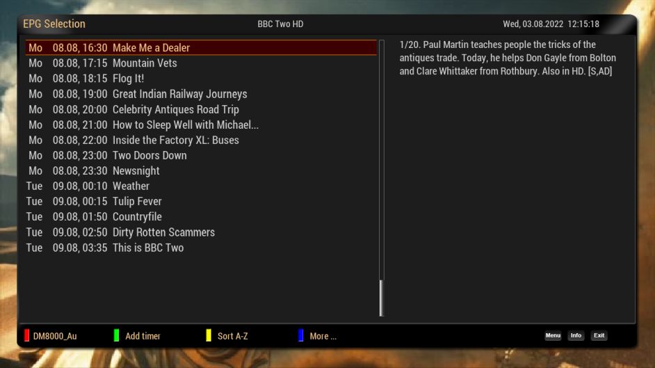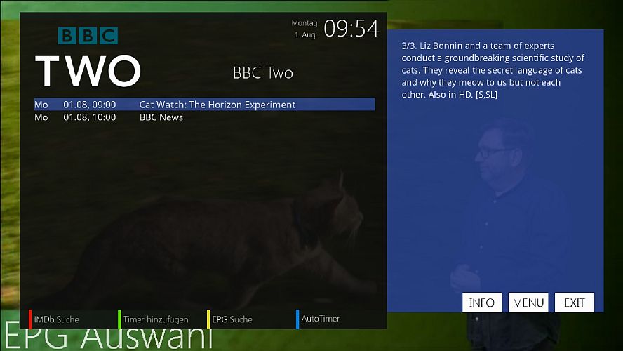 Das einzige Problem, welches ich bisher nicht habe lösen können ist der EPG auf 28.2E zeigt auf den verfügbaren Sendern entweder nur die aktuelle Sendung sowie die nächste an (BBC One z.B.),oder einfach gar nichts (Channel 4 z.B.).