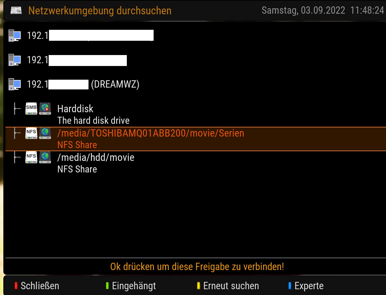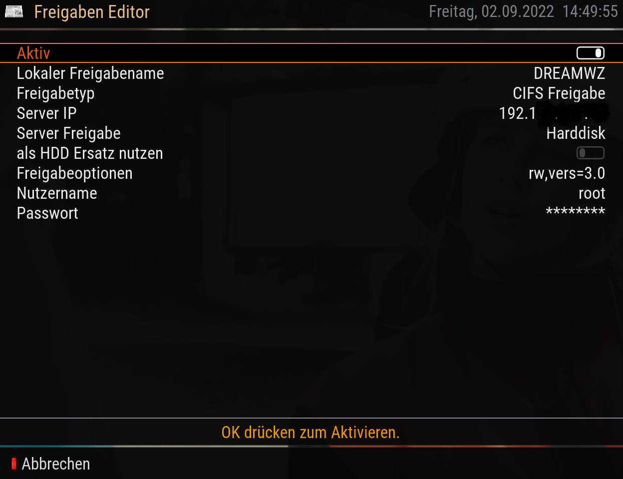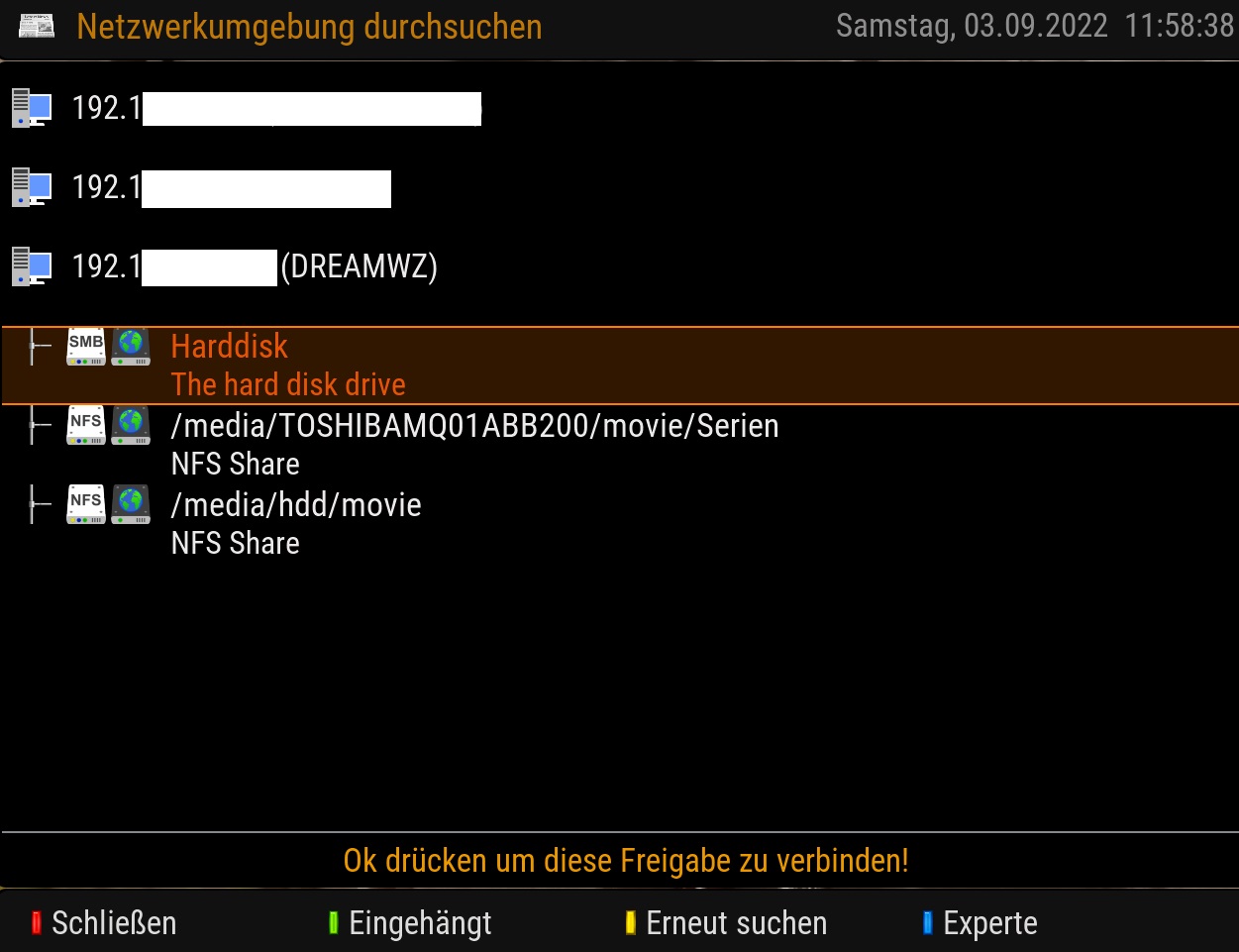Bei der Harddsk kann ich nur auf CIFS stellen, sonst wird rum gemeckert das es bereits diese Freigabe gibt und bekomme ein rotes Kreuz rein.