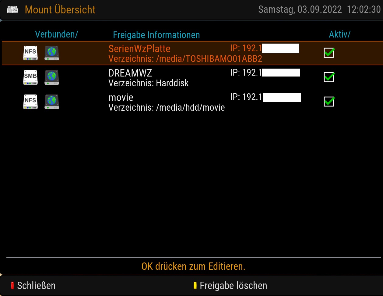 • Bevor ich ins Bett gehe, fiel mir gerade noch der enigma2-plugin-newnigma2-nfseditor ein, den brauchst du für die exports-Freigabe. Oder macht es zumindest einfach ohne telnet und Filzilla.