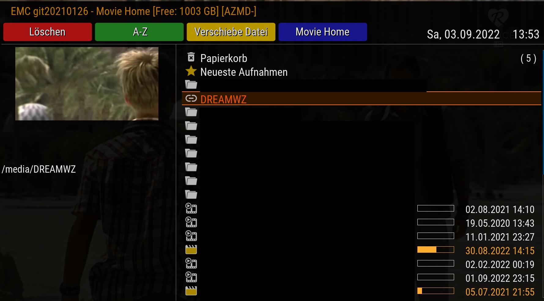 Beim 2. Versuch öffne ich den Movie Ordner, so das ich alle Ordner die ich im Aufnahme Ordner erstellte sehe,