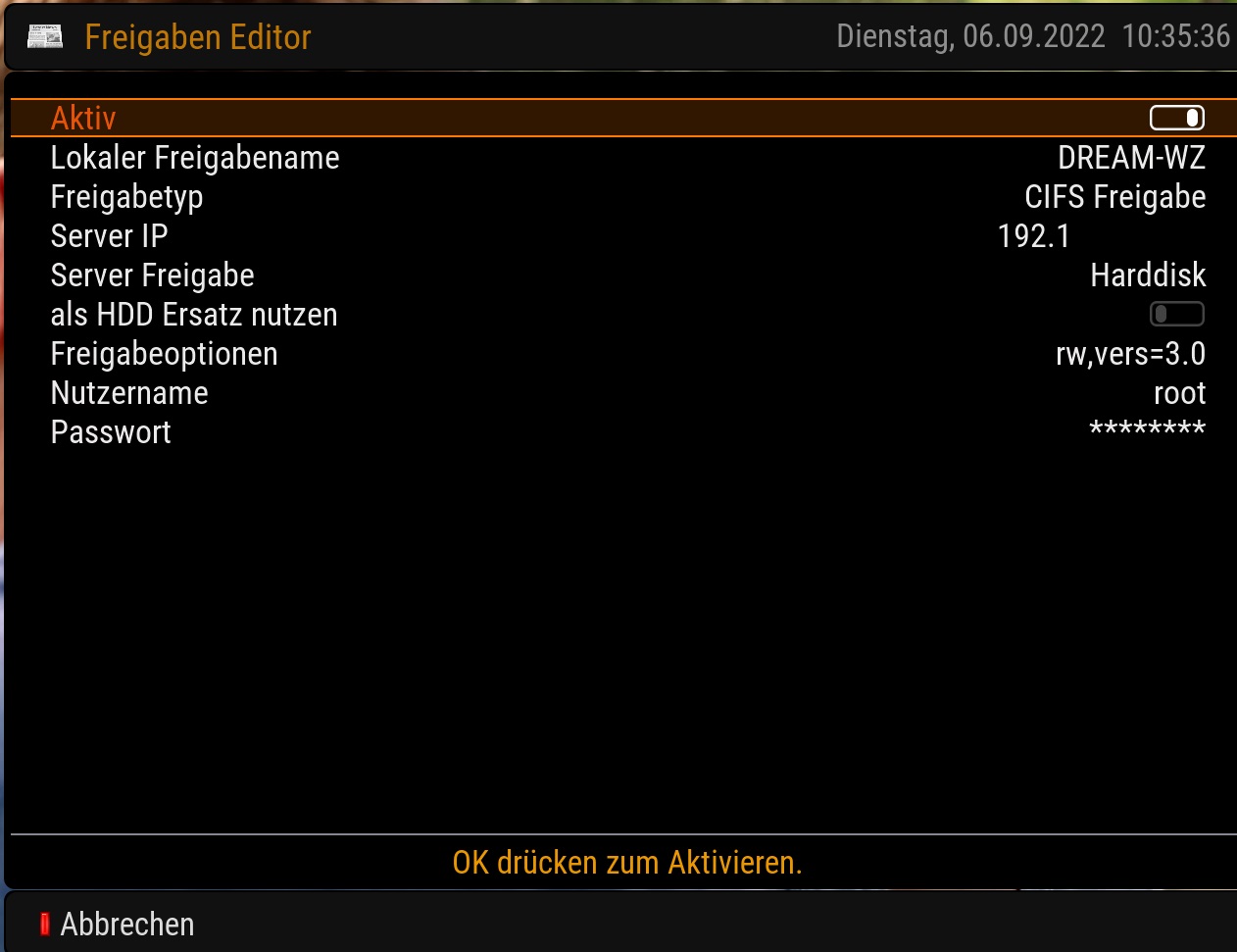 Ich würde gerne NFS nehmen, aber ich kann bei einem NUR CIFS-Freigabe einstellen.