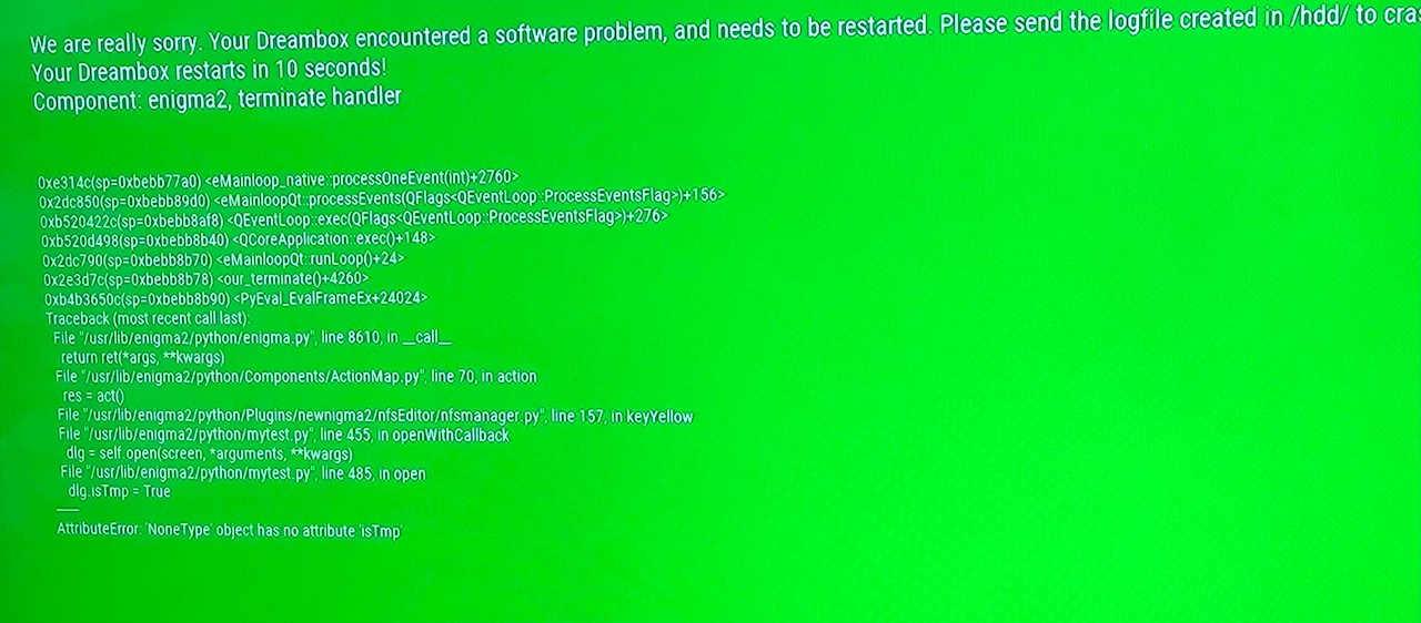 • Mit den grünen Fotos kann keiner was vernünftiges anfangen. Das relevante steht in den log-Dateien im Ordner /media/hdd. Den kannst du als Dateianhang deinem Beitrag hinzufügen.