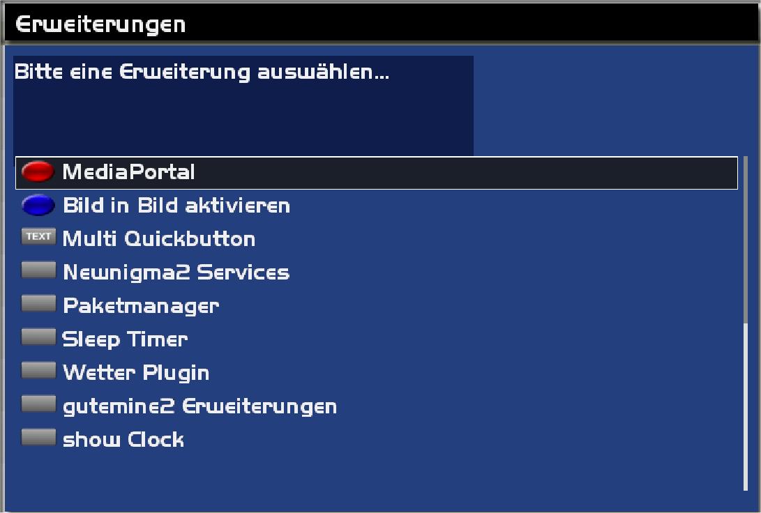 Ach ja, hier noch die Erweiterungen (blaue Taste lang drücken):