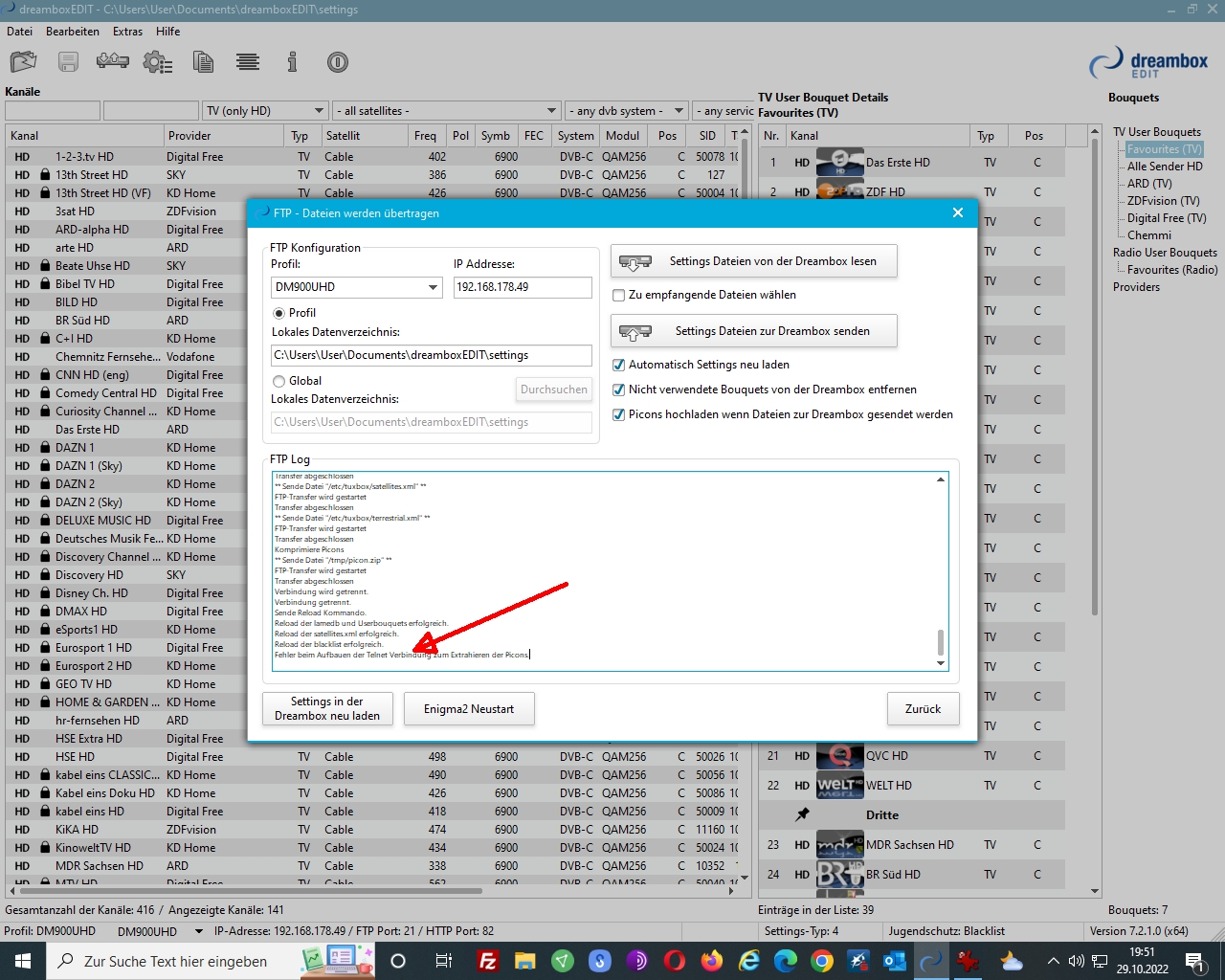 Da steht " Fehler beim Aufbau der Telnetverbindung..."