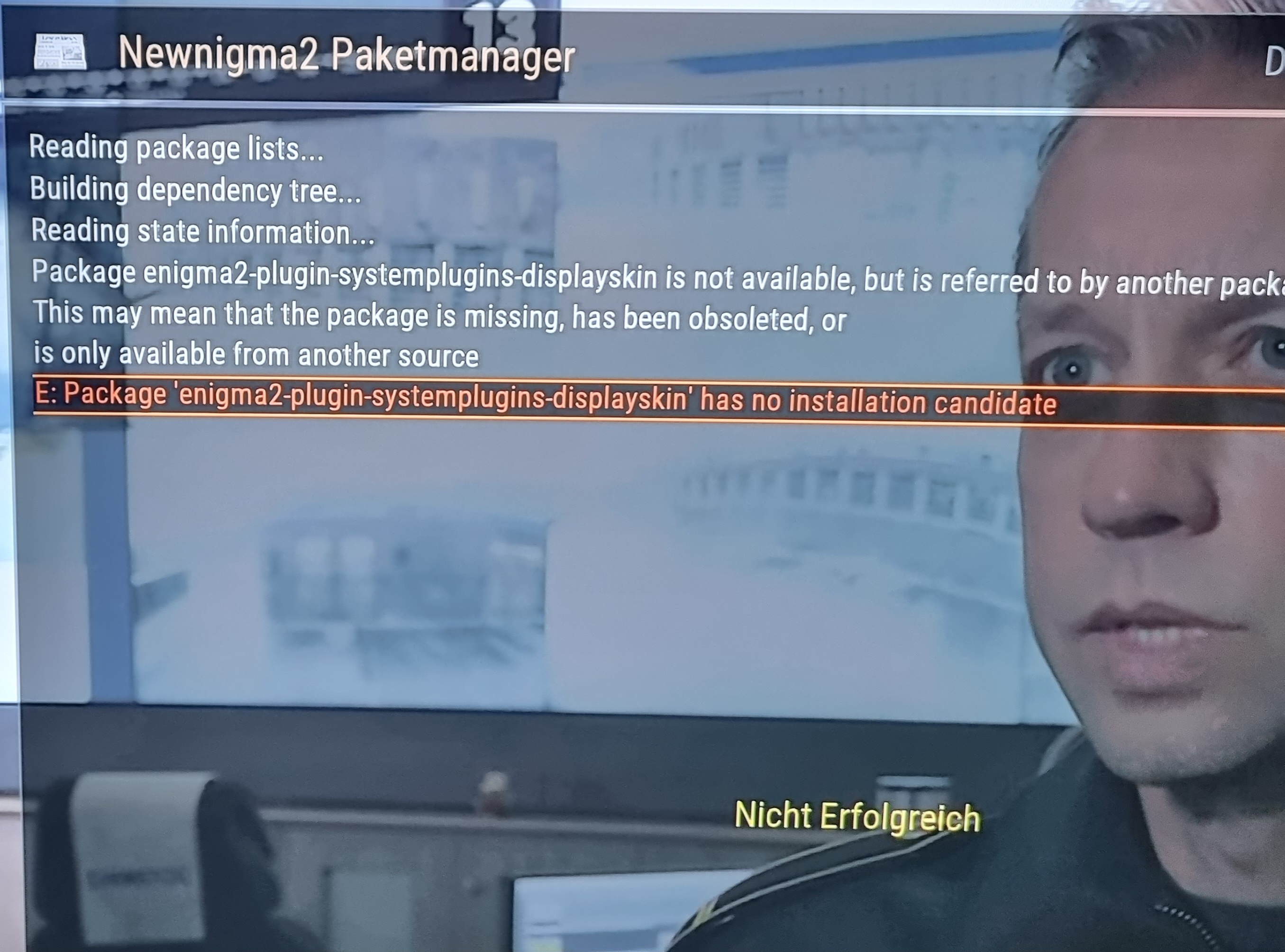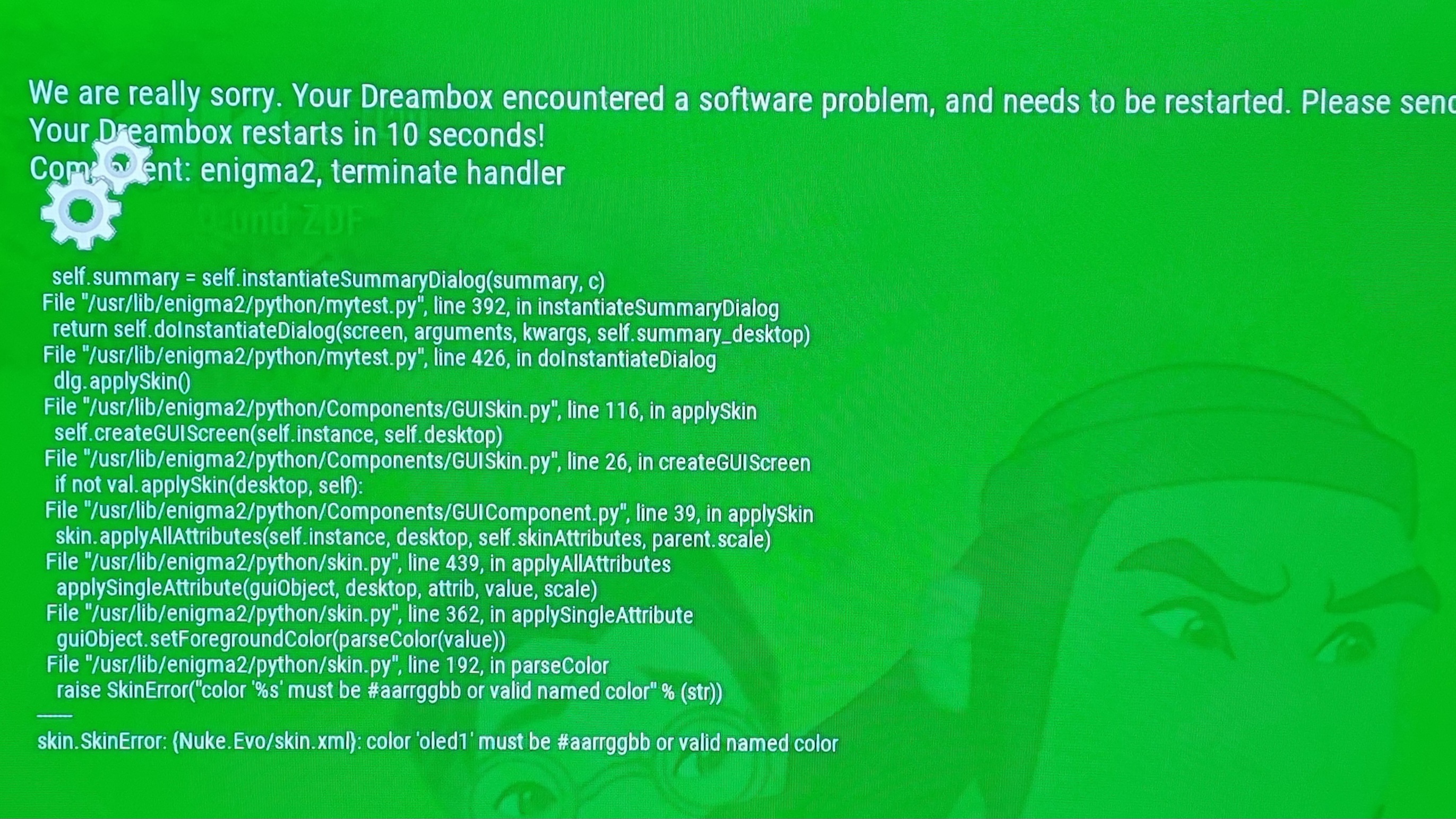 grünen Screen und die Fehlermeldung.