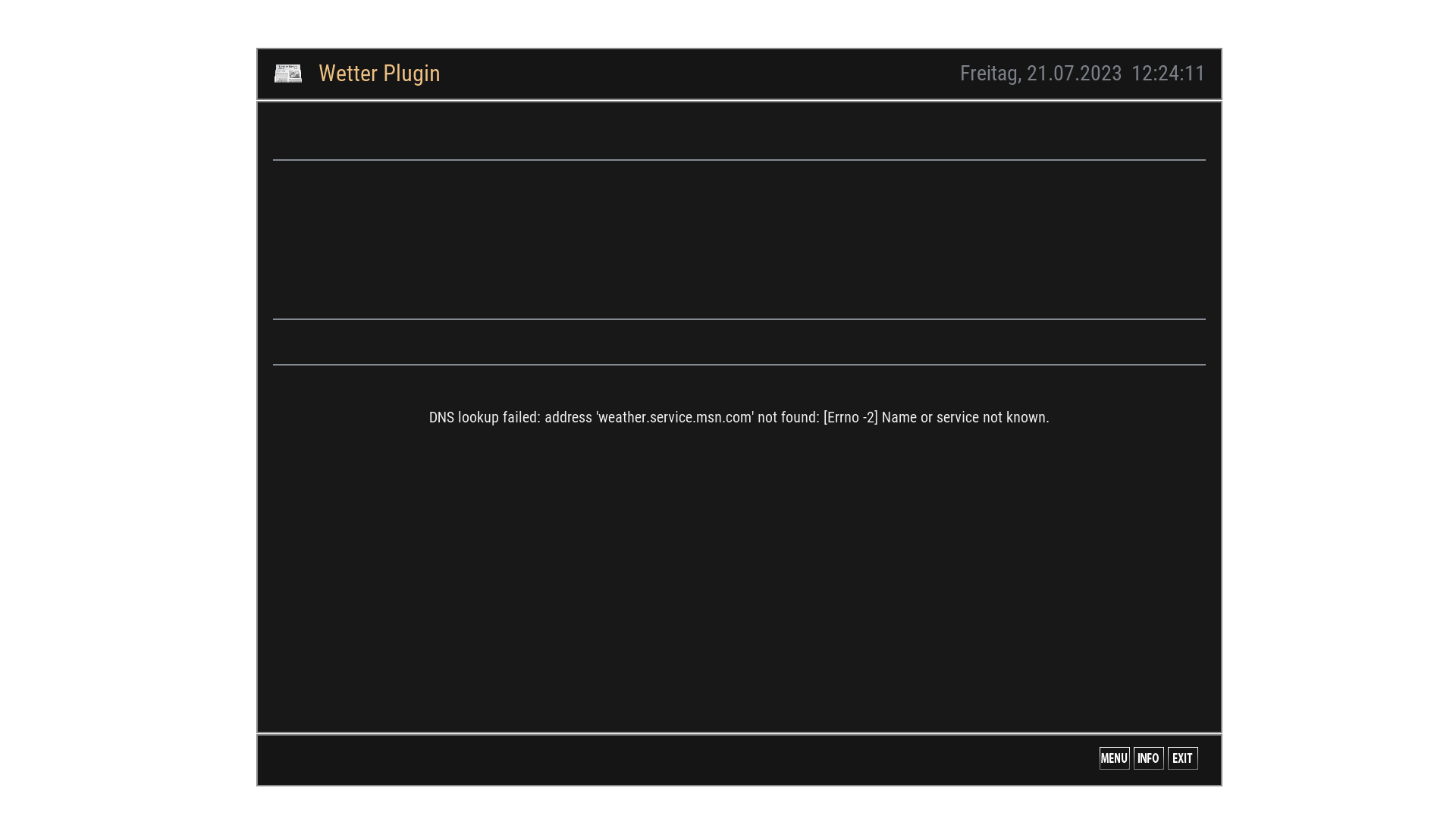 Wenn du das in der Infobar so wie bei MSN Weather haben willst, muss Wetter.com im Skin auch geskinnt sein, sonst wird nur das Standardanzeige des Plugins angezeigt.