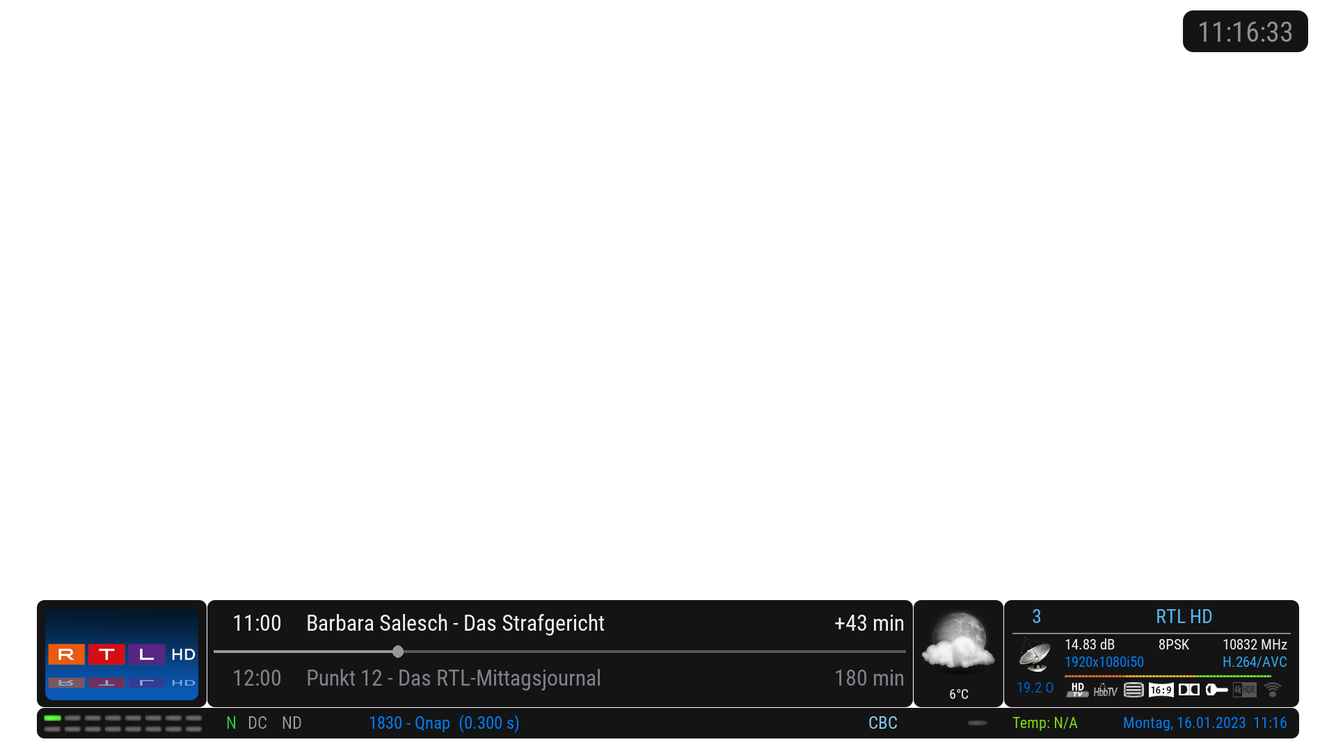 • was bedeuten dann die Striche grün und Buchstaben unten links ? Meine Anzeige sieht jetzt noch bei der 7080 so aus und ich kann da nicht erkennen, welche Tuner aktiv sind bzw. welchen man aufnimmt u. mit welchem man schaut.
