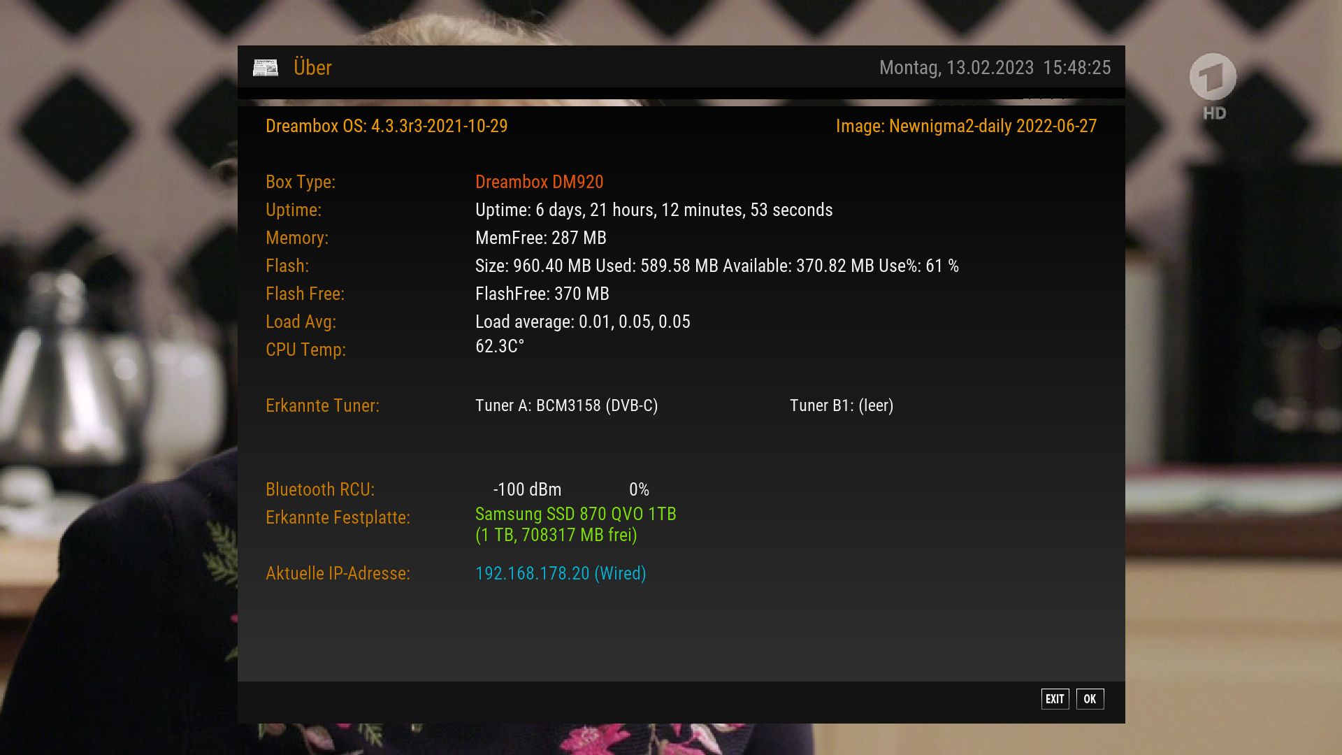 Leider kann das OS oder Newnigma der DM920 die Temperatur der Festplatte nicht auslesen. Siehe Bild
